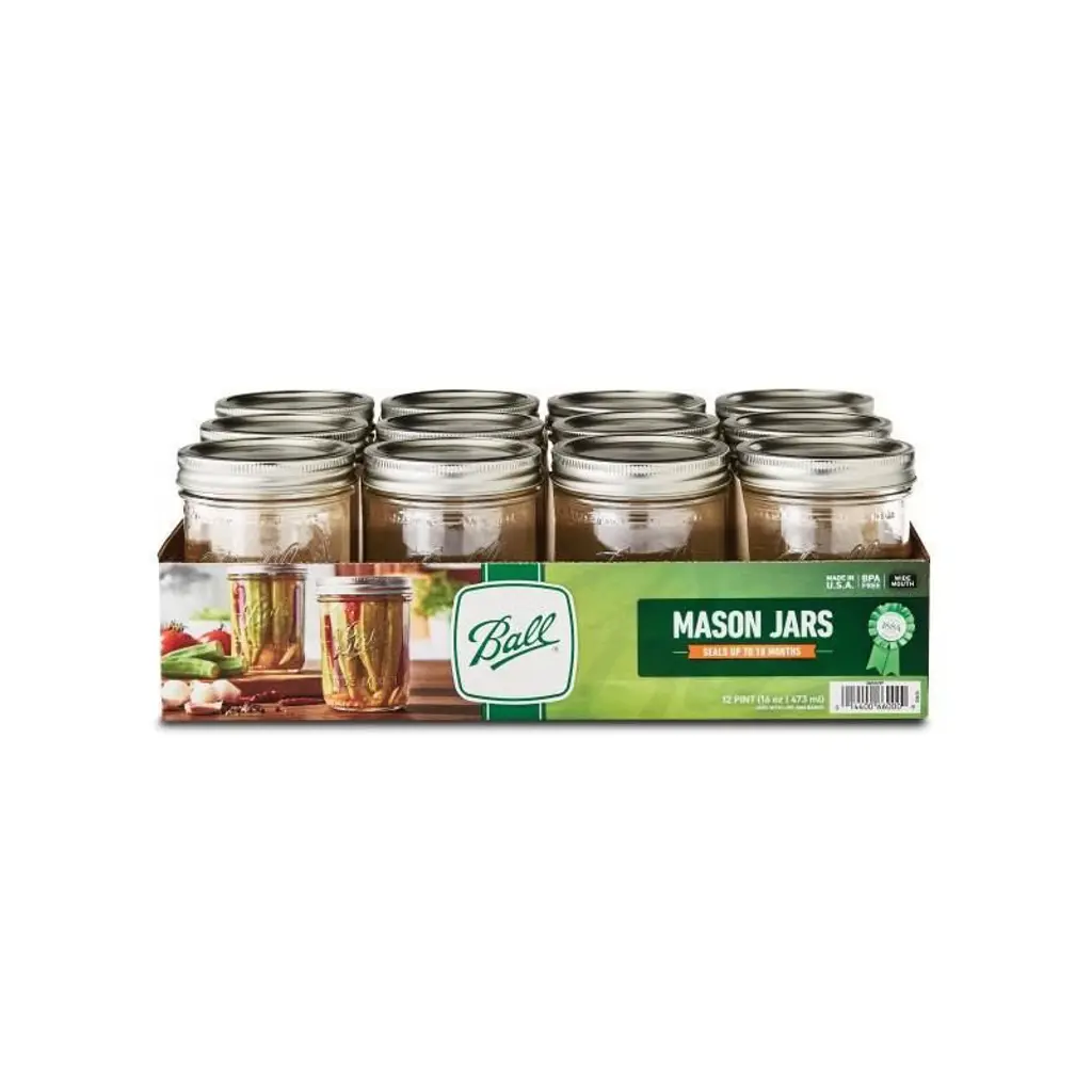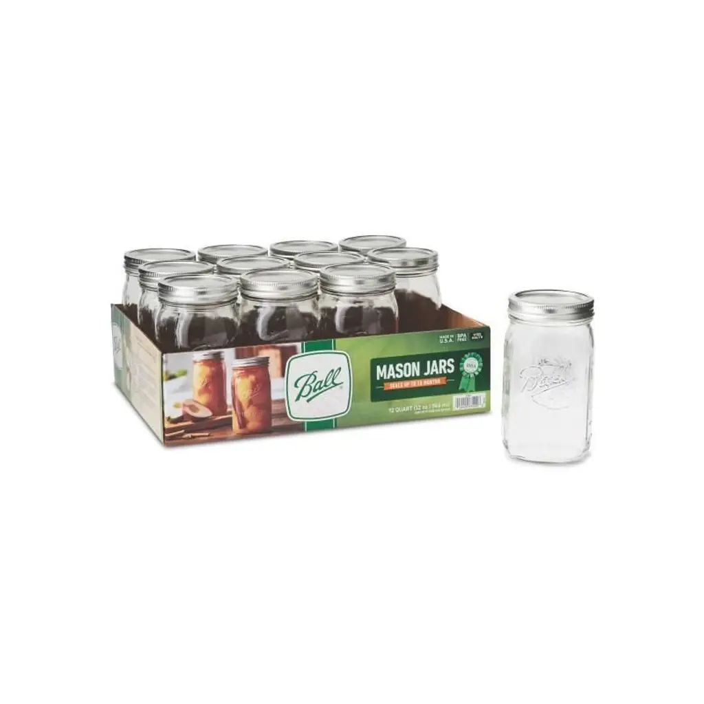 Elevate your food preservation game with this comprehensive set of Ball Wide Mouth Glass Mason Jars. Crafted from sturdy glass, these jars are designed for durability, ensuring your canned goods stay safe and secure. Whether you're into canning, pickling, or making homemade jams and jellies, these jars are the perfect companions. The wide mouth design makes filling and cleaning a breeze, while the included lids and bands ensure a tight seal for freshness. With 12 quart-size (32 ounce) and 12 pint-size (16 ounce) jars in this set, you'll have plenty of storage options for your culinary creations. Trust in the quality and reliability of Ball, a brand that's been synonymous with home canning for generations.
