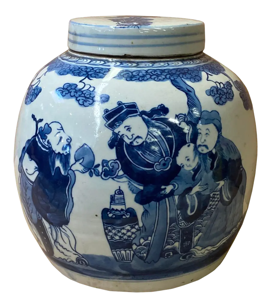 B&W Ginger Jar W/ Eight Immortals Motif By Legends Of Asia