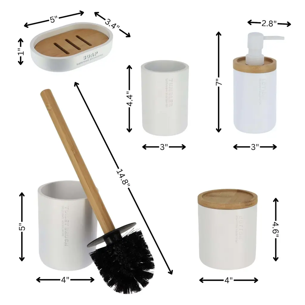 Bathroom Essentials Set Natural Bamboo Bath Set Accessories 5 Pieces - White