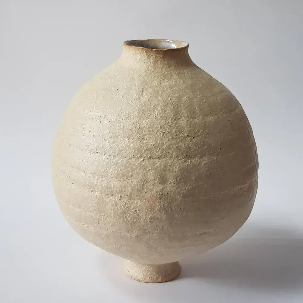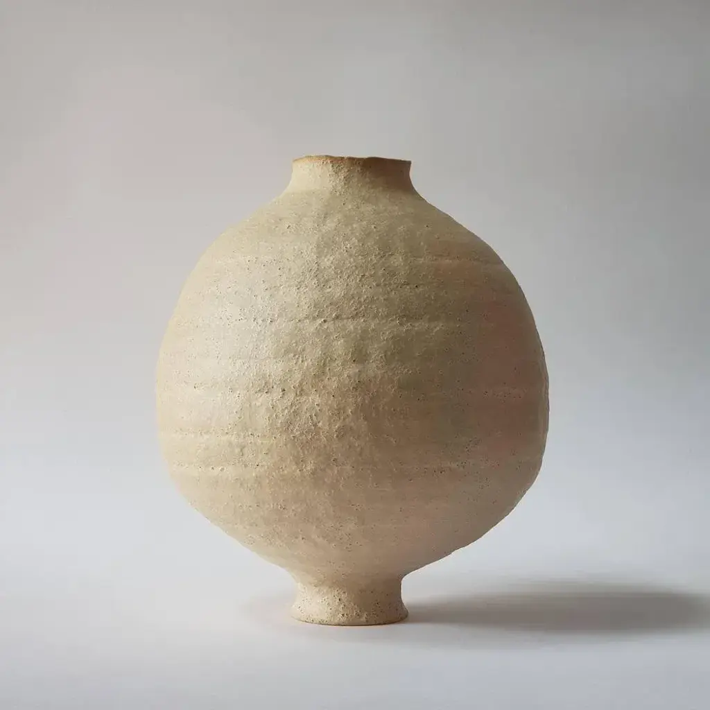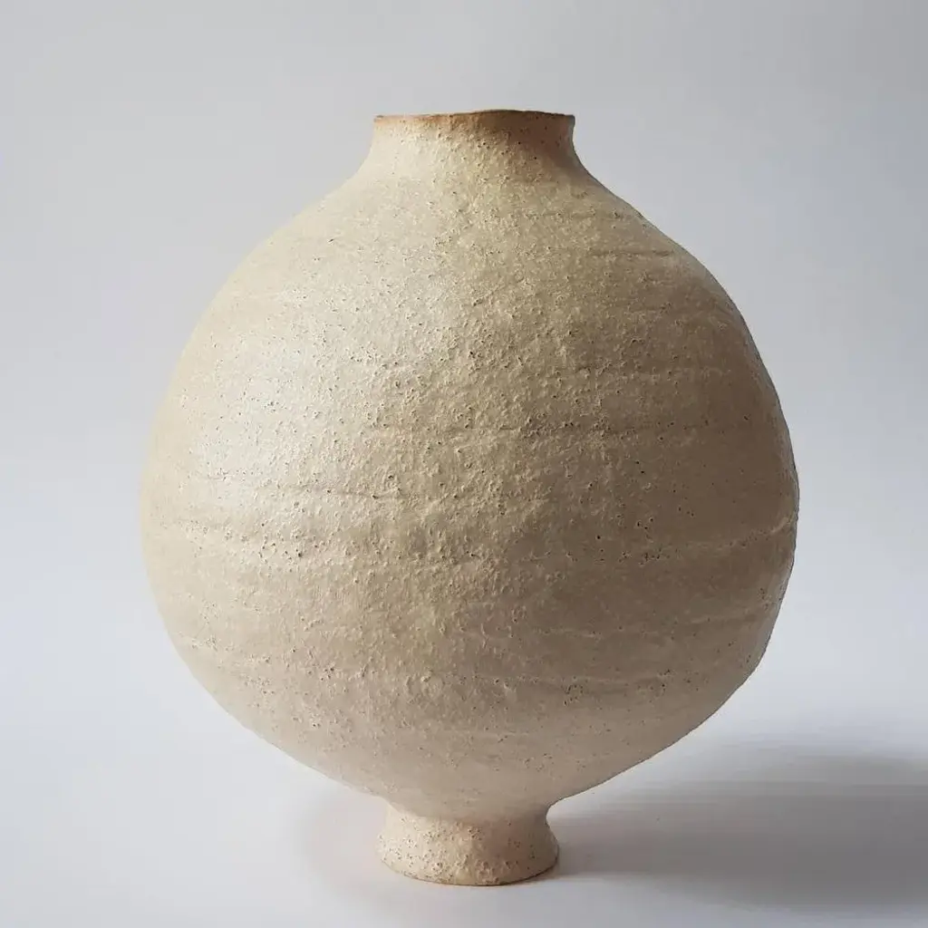 Beige Stoneware Coiled Moon Jar By Elena Vasilantonaki