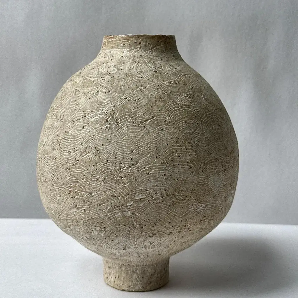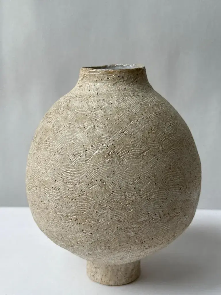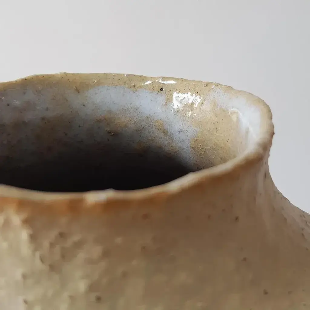 Beige Stoneware Coiled Moon Jar by Elena Vasilantonaki Unique Dimensions: ⌀ 23 x H 27 cm (Dimensions may vary) Materials: Stoneware, Earthenware Available finishes: Experimental Glazes, each one is unique
