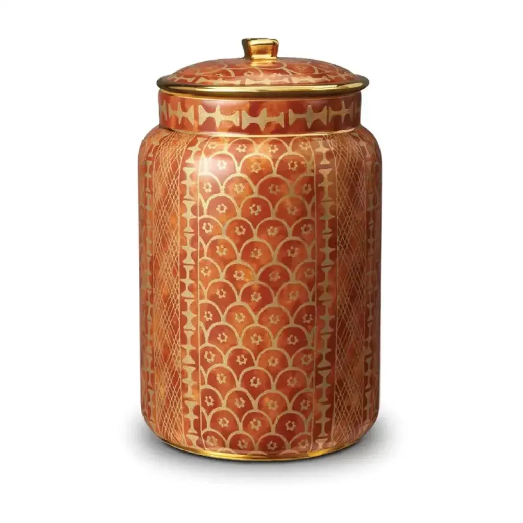 This porcelain vase is artfully adorned with cream-colored flourishes against a glossy black finish for a timeless look that we love.