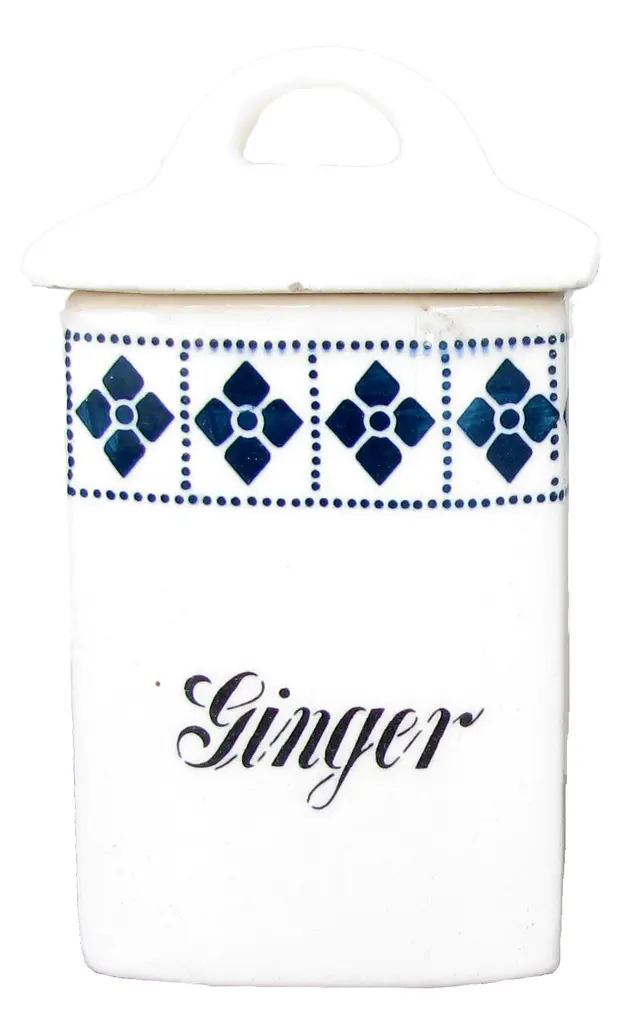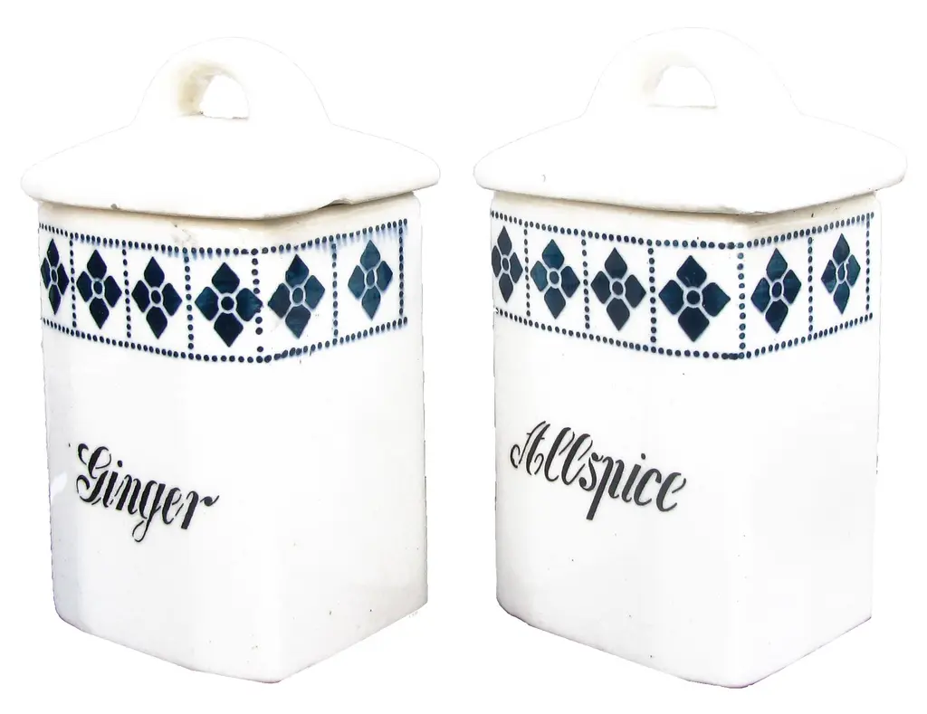 Blue & White Art Deco Spice Jars, Pair