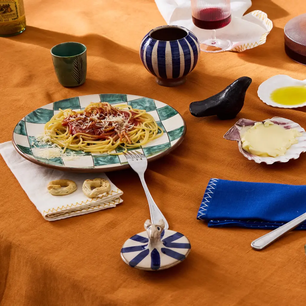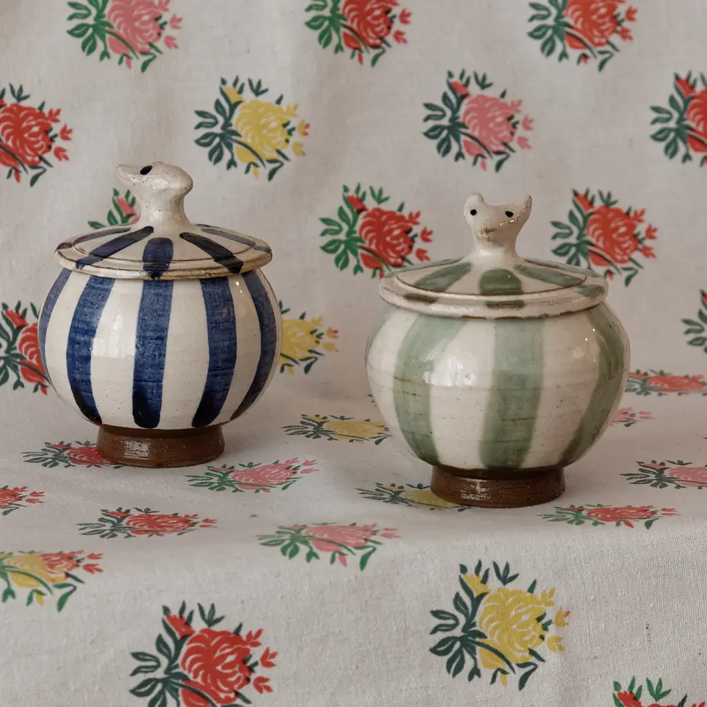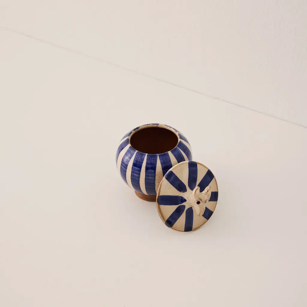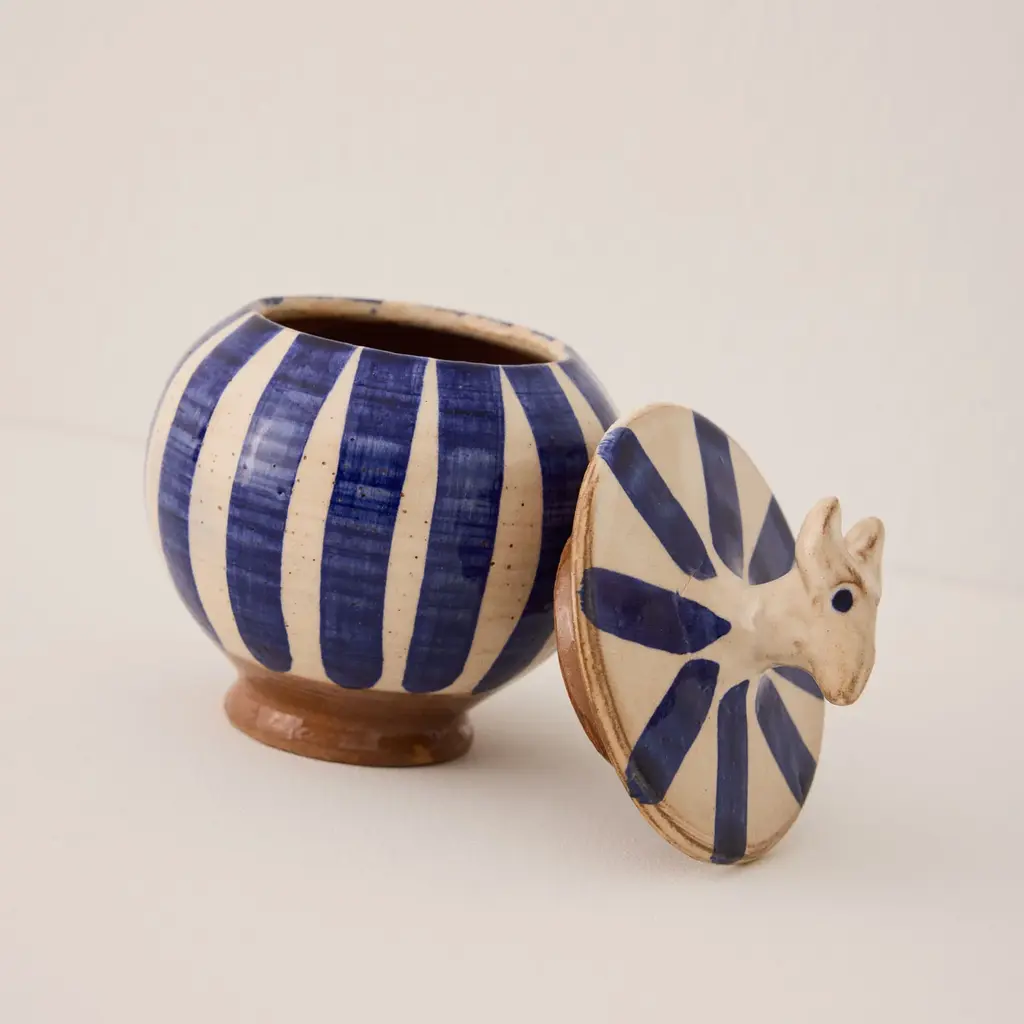 Looking for a one-of-a-kind jar to store your favorite jam, honey, or sugar and add a cheerful touch to your afternoon tea? Enter the Circus Jar by ANŪT — a delightful blend of function and whimsy, infused with artisanal charm. Handcrafted in Egypt's Fayoum Oasis, using clay from Upper Egypt and a lead-free glaze, this jar is more than just visually appealing; it's a tribute to Egypt's time-honored crafts. * ANŪT Cairo products are entirely handcrafted, so slight imperfections, color variations, and minor size differences may occur.