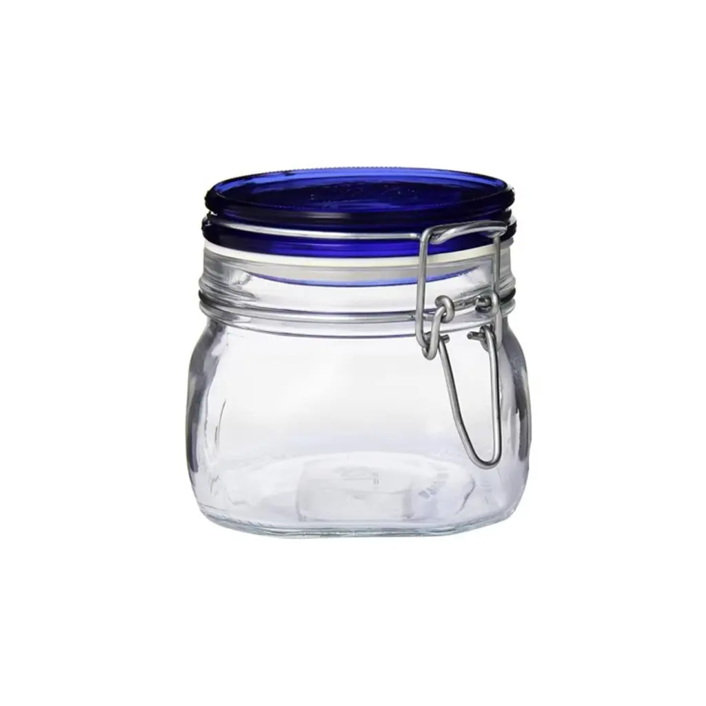 The Bormioli Rocco Fido Glass Canning Jar with Blue Lid is a reliable and stylish solution for both home canning and pantry storage. With a 25.25 oz capacity, this Italian-made glass jar is designed to handle everything from preserving homemade sauces, jams, and pickled vegetables to organizing pantry staples like pasta, rice, coffee, flour, and beans. Built with functionality in mind, this jar features a sturdy metal clamp closure paired with a rubber gasket to ensure an airtight seal that helps extend freshness and lock in flavors. Its secure design makes it ideal for traditional “au bain-marie” cooking methods, giving you confidence in your canning results. Beyond preservation, this jar serves as a versatile storage solution that brings order and style to your kitchen. The tinted blue lid color is fused into the glass, offering a decorative accent that won’t fade over time. Transparent glass construction allows you to easily view contents, making pantry organization simple and efficient. The glass body is both dishwasher and microwave safe, ensuring convenience in everyday use. To preserve the integrity of the seal, the rubber gasket and clamp should be hand-washed. Reusable and durable, this jar provides a smart alternative to disposable containers, making it a go-to for food lovers, home canners, and anyone looking to streamline pantry organization. Whether you’re preserving seasonal produce, storing dry ingredients, or creating an organized pantry, the Bormioli Rocco Fido Glass Jar delivers reliable performance and classic Italian craftsmanship.