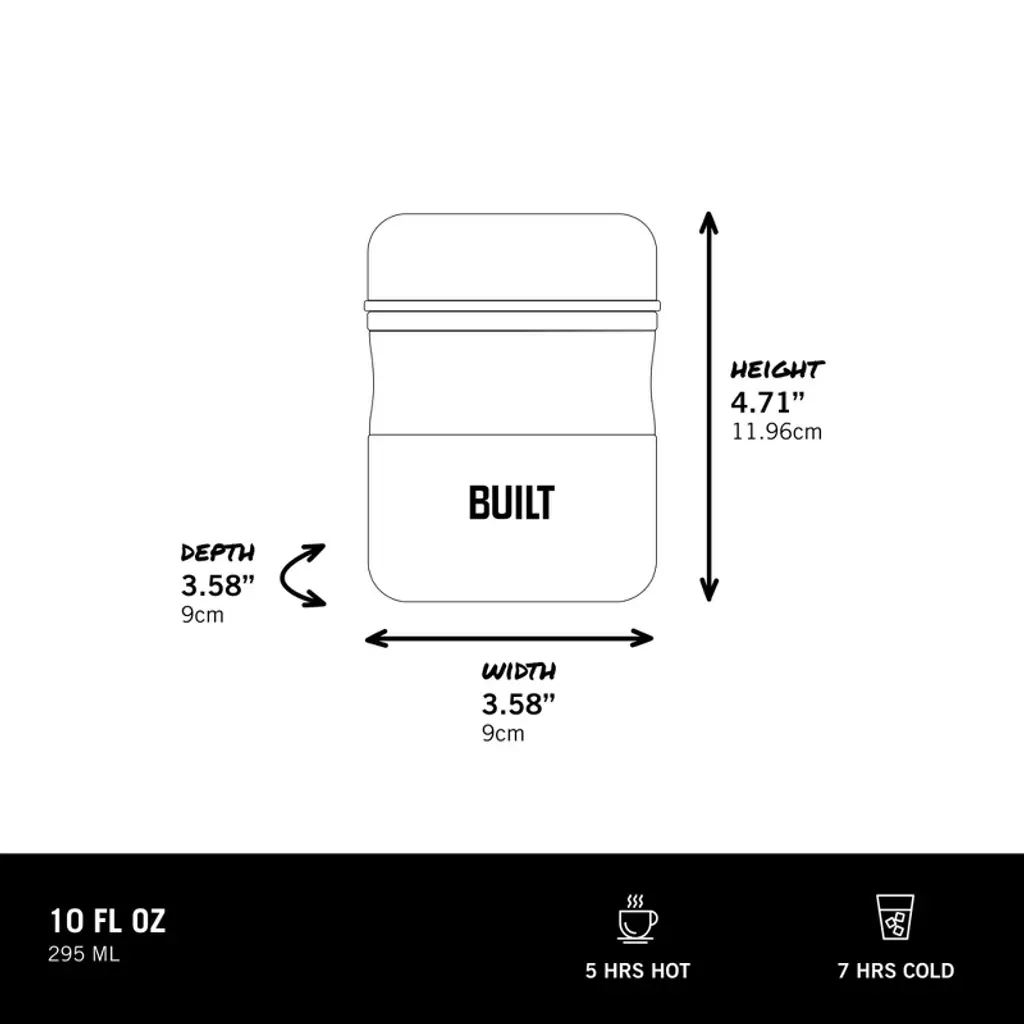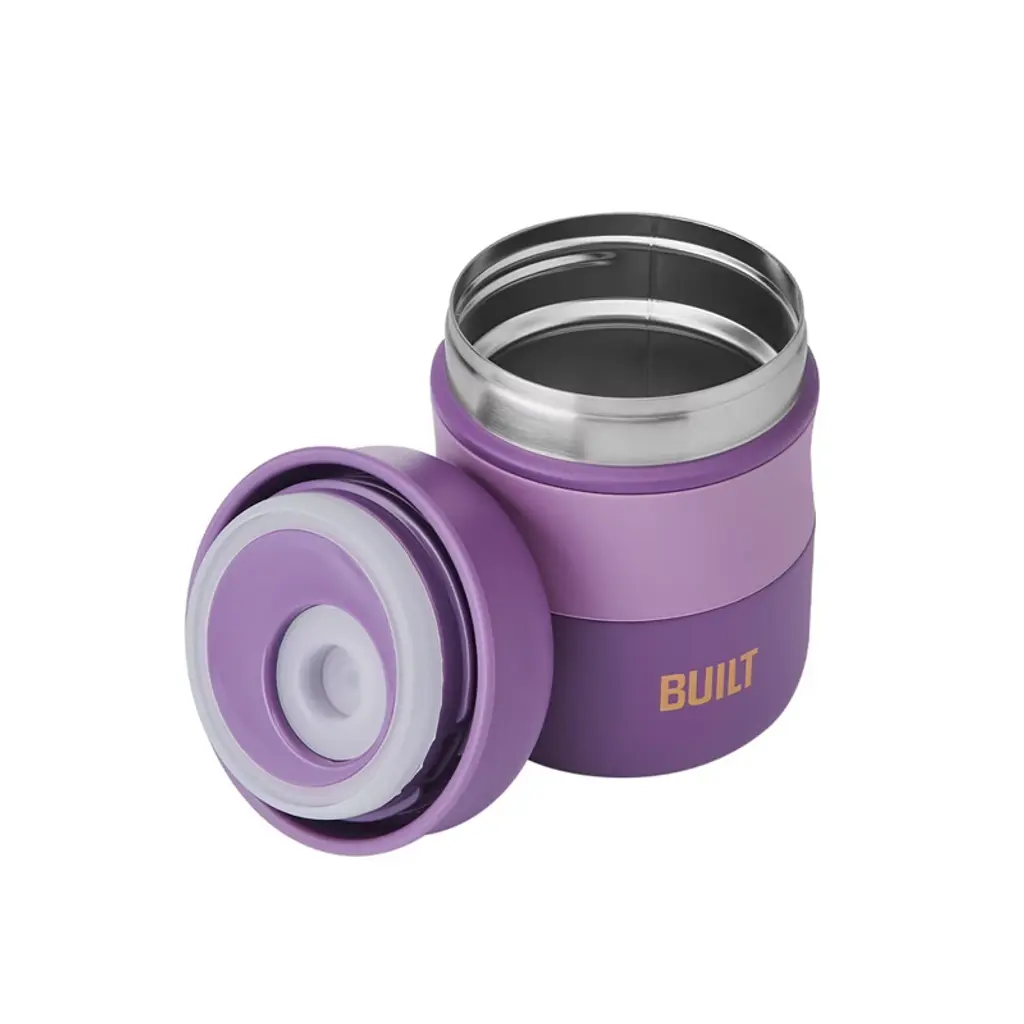 Keep meals at the ideal temperature no matter where the day takes you with the BUILT 10oz vacuum insulated food jar in bold purple. Made from 18/8 double-wall stainless steel, this on the go food container maintains food temperatures for hours—hot for up to 7 hours, cold for over 9—making it an excellent solution for school lunches, office snacks, or travel meals. The BPA free food container is crafted without phthalates, lead, or PVC, offering a safe, reusable alternative to disposable plastic options. A wide mouth opening makes it easy to load and clean, while the leakproof gasket lid provides reliable sealing to prevent spills and retain temperature. The exterior features a silicone grip for secure handling and a soft non-slip base that keeps the jar stable on surfaces without sliding. This compact, 10-ounce insulated food container fits into most car cup holders, lunch bags, or backpacks, and its sweat-free body ensures a dry, comfortable grip. Whether you're packing soups, pasta, or fruit, this jar is the ideal companion for busy mornings, travel, and packed lunches.
