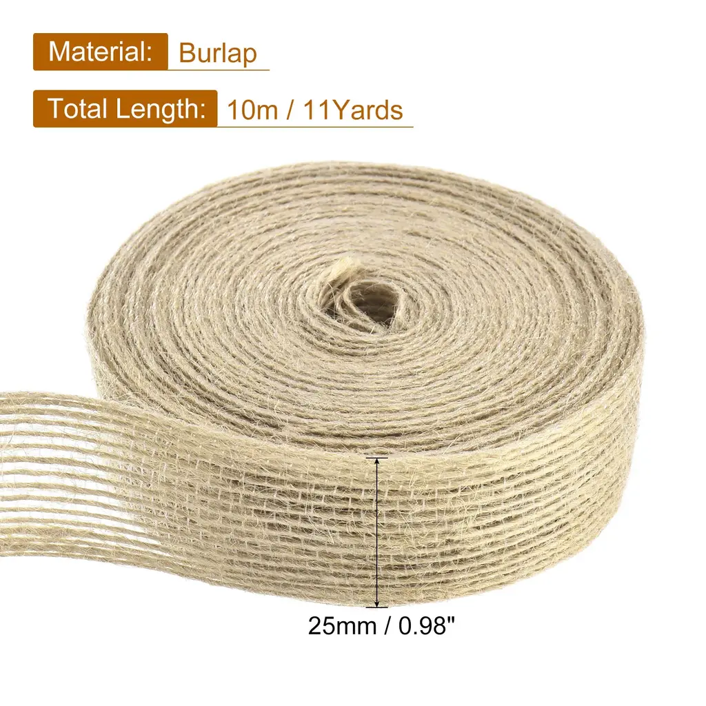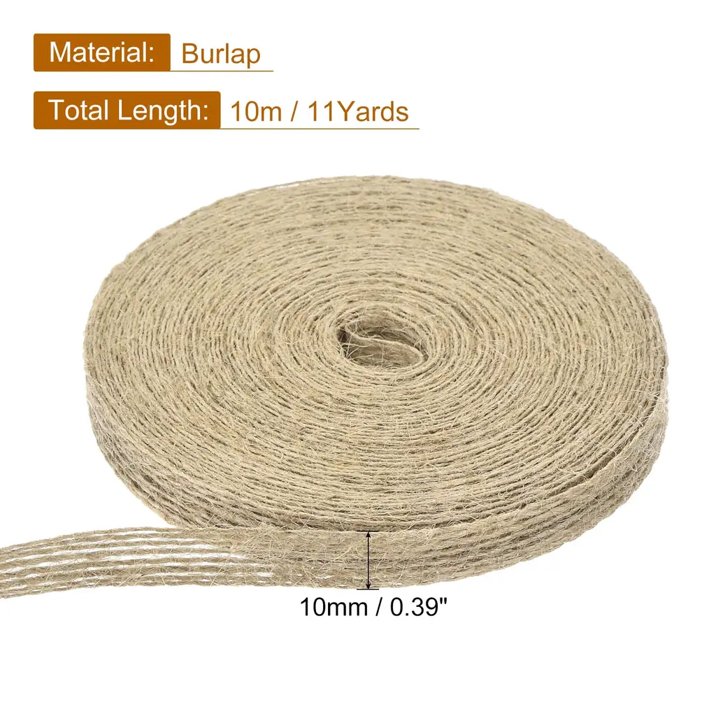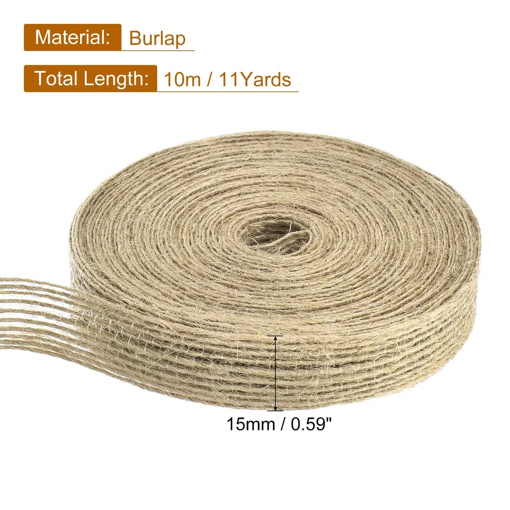 Burlap Fabric Ribbon, Natural Fabric Burlap Jute Ribbon - Jute Color - 0.59inch X 11 Yards