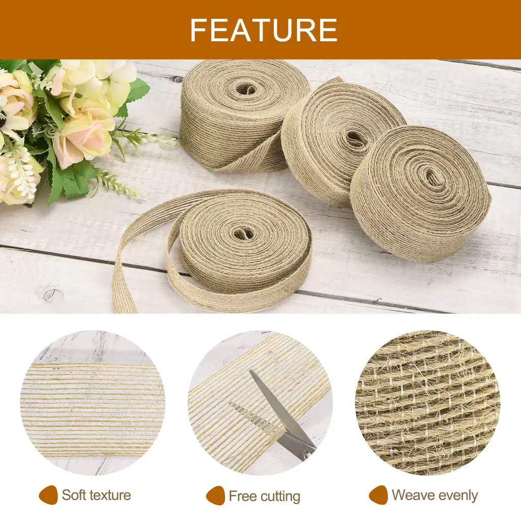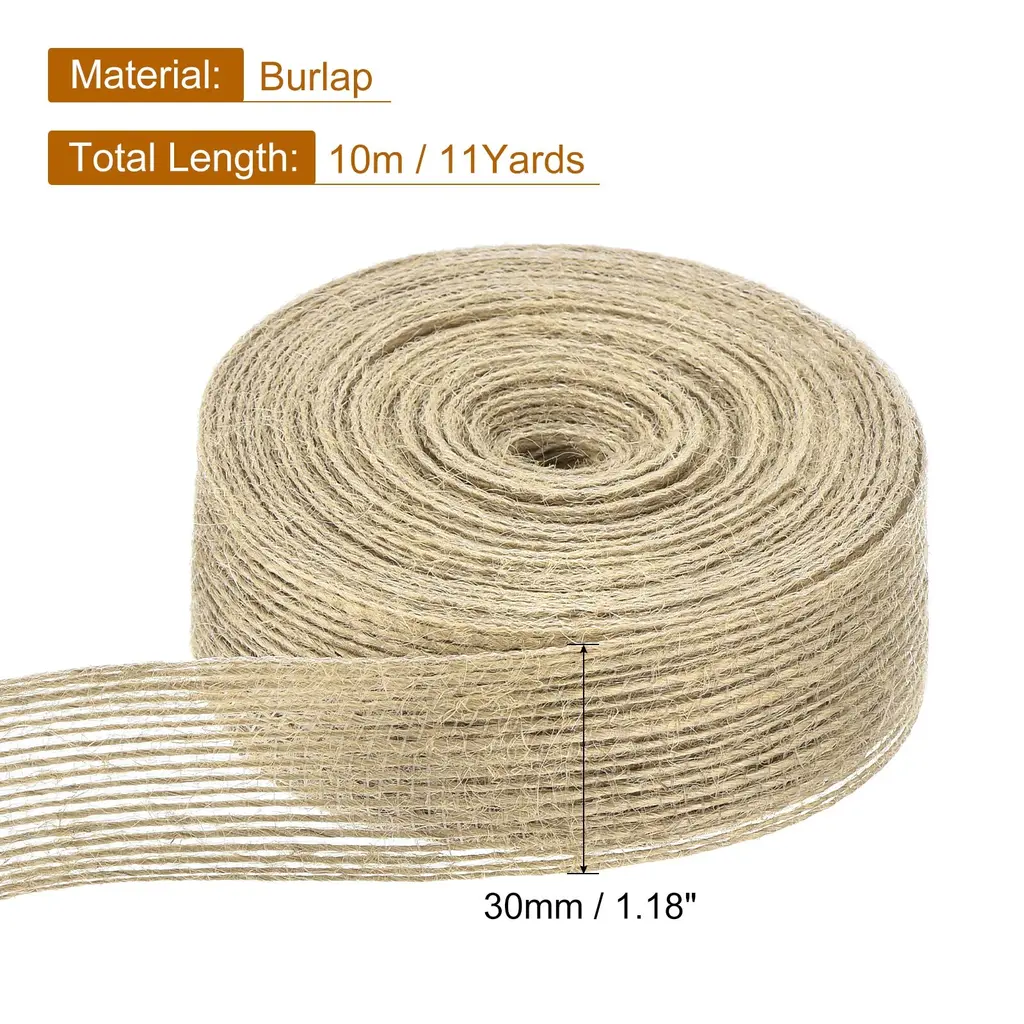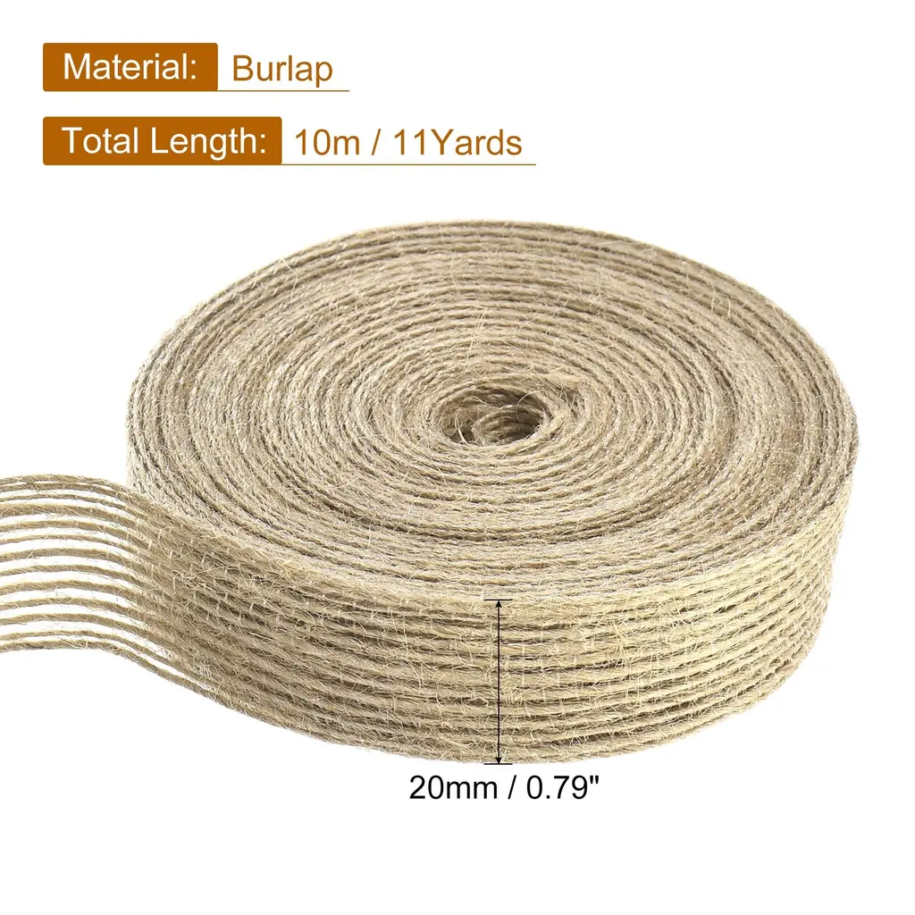 Burlap Fabric Ribbon, Natural Fabric Burlap Jute Ribbon - Jute Color - 0.59inch X 11 Yards