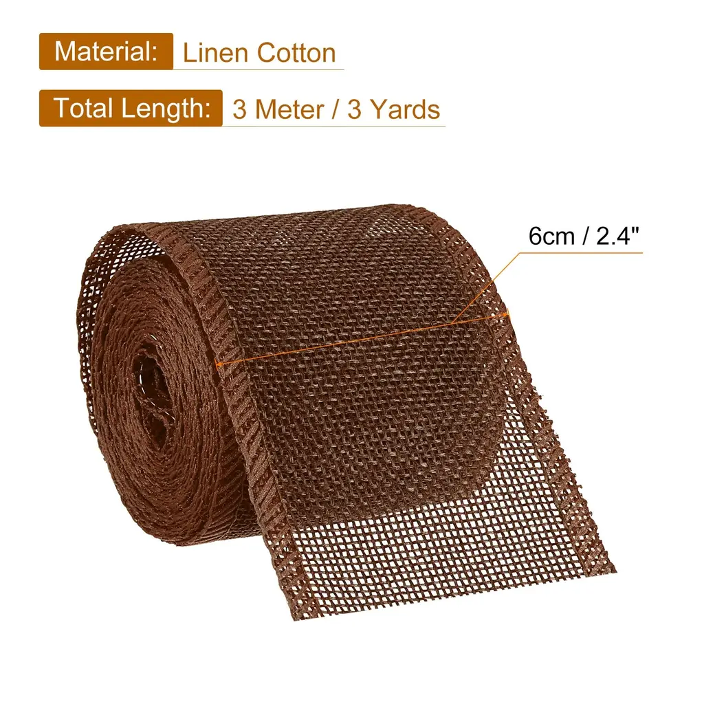 Burlap Wired Ribbons, 2.4inch X 3Yards Natural Burlap Weave Ribbon - Brown