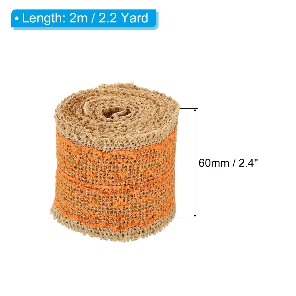 Burlap Wired Ribbons, 2.4inch X 5Yards Natural Burlap Weave Ribbon - Orange