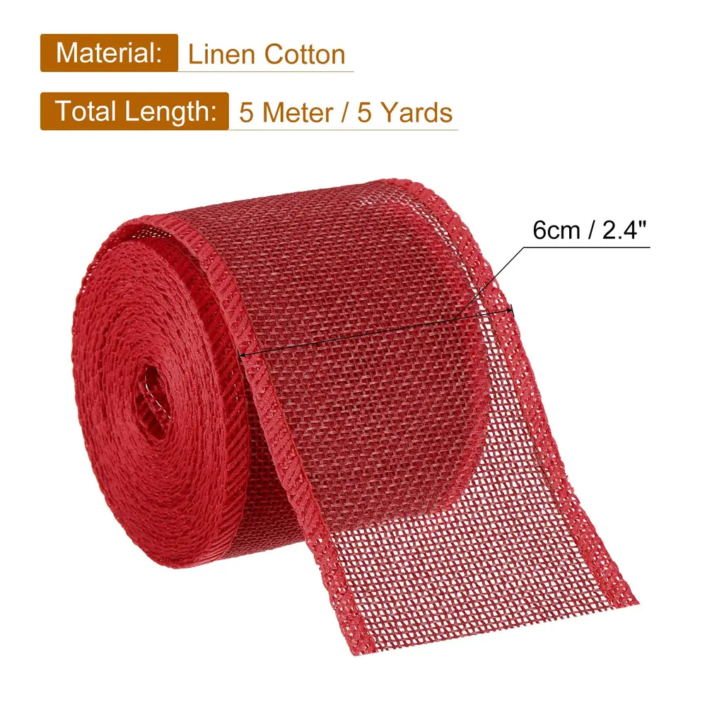 Description:[Material]: The burlap wired ribbons are made of linen cotton material, soft and durable, tear-resistant, easy to clean and store, not easy to fade and wear, reusable, and reliable for long-term use. [Design]: The burlap-wired ribbons adopt a unique line-edge sealing design, which is not easy to deform and tear. Burlap weave ribbon is easy to fold and bend to meet different decorative shapes. A variety of colors to choose from, simple and elegant, meeting the needs and preferences of different users, giving gifts a warmer and special feeling.[Installation]: These wrapping ribbons are soft and easy to operate, with high flexibility, it is convenient for you to carry out different forms of decoration and binding according to your preferences. The ribbon can be cut and the length is adjustable. You can choose the length according to your needs.[Application Scenario]: Burlap weave ribbon can be widely used in Easter, Christmas, Valentine’s Day, Spring Festival, weddings, parties, birthdays, and home decoration, as well as wrapping of various items, such as jars, wine bottles, invitations, flowers, vases, cakes, DIY crafts, and gifts, and more.Specification:Color: RedMaterial: Linen CottonOverall Size: 5 Meter x 6cm / 5 Yards x 2.4 inch (L*W) Package Content: 1x Burlap Wired Ribbon