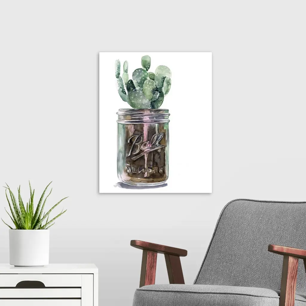 Cactus Mason Jar II wall art for home and office decor. Discover canvas art prints, photos, mural, big canvas art and framed wall art in GreatBigCanvas.com's varied collections.