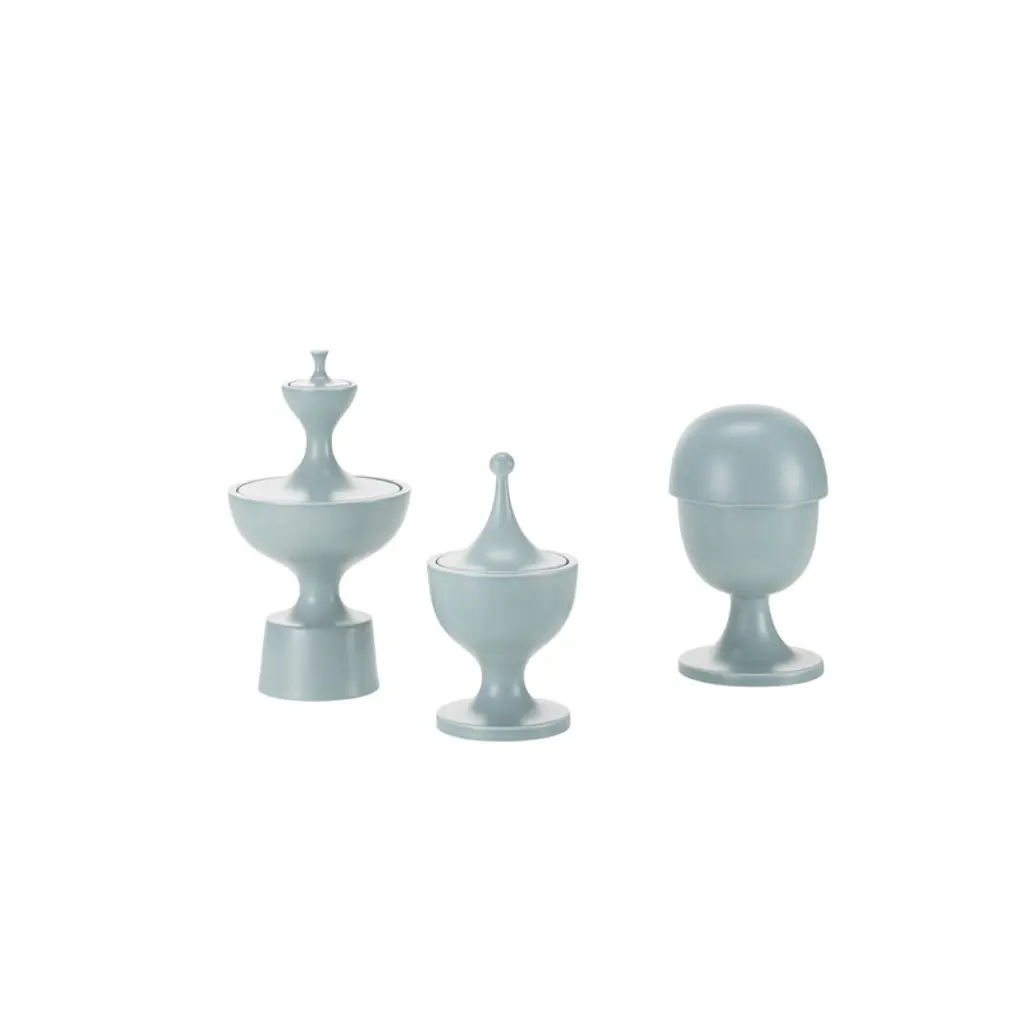 Vitra’s Ceramic Containers represent the playful design language typical of American designer Alexander Girard, where functionality is combined with sculptural flair. The jar makes an eye-catching element in the decor whether used simply as a decorative accessory or as a distinctive storage space for keys and other bits and bobs. The original jars, designed in 1952, were hand-turned from wood by Girard himself, and today they can be found in the archives of the Vitra Design Museum. To make the delightful works more widely available again, Vitra joined forces with the Girard family to develop ceramic versions of them, introducing Ceramic Containers in 2021. The hand-glazed boxes are available in various shapes in a range of shades inspired by Girard's color palette.