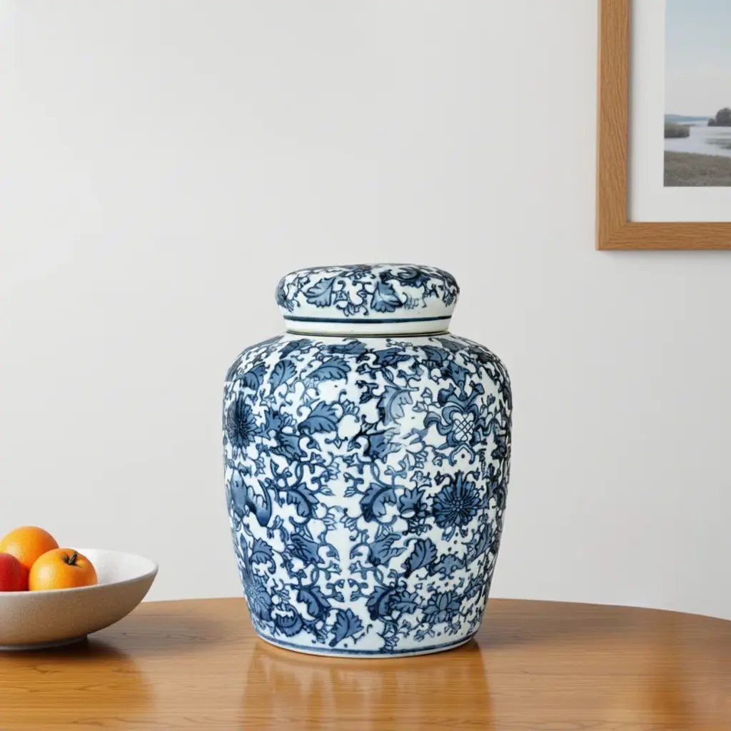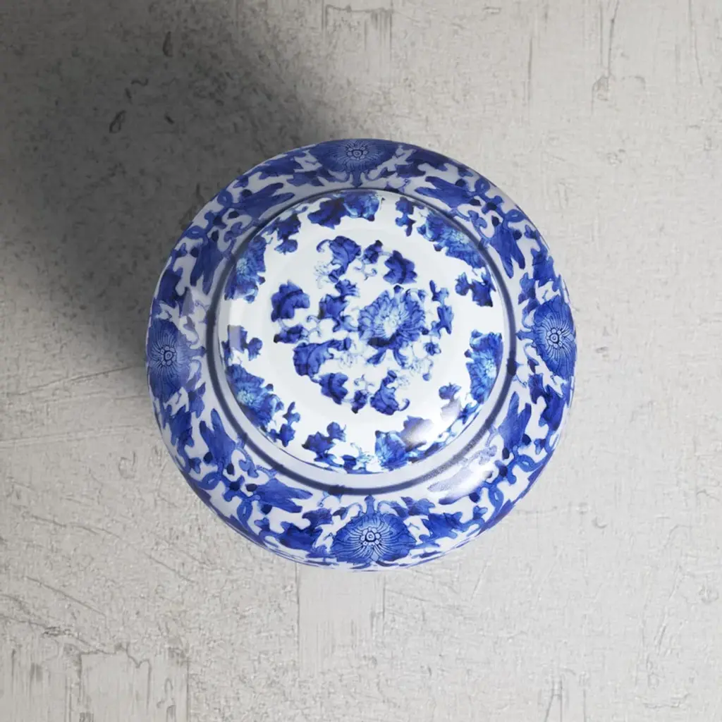 Welcome some traditional style into any room of your home with this classic decorative urn. Made from ceramic, this urn has a curved body with an Asian-inspired blue and white floral pattern that's just right for decorating a bookcase or mantle. And since it includes a lid, this urn is also great for storing cotton balls in your bathroom or your sea glass collection in your living room. To clean, we recommend wiping with a dry cloth.