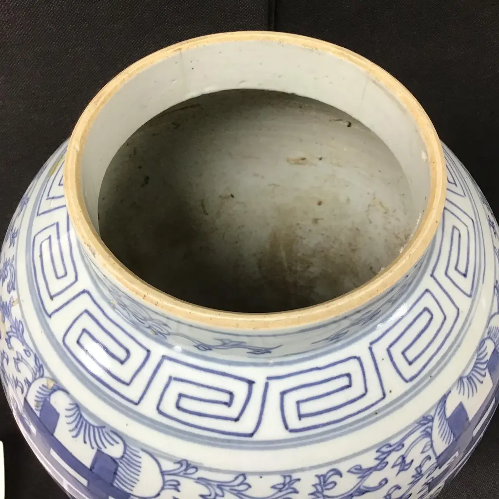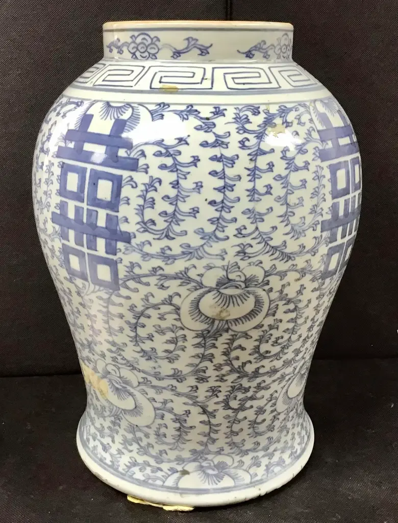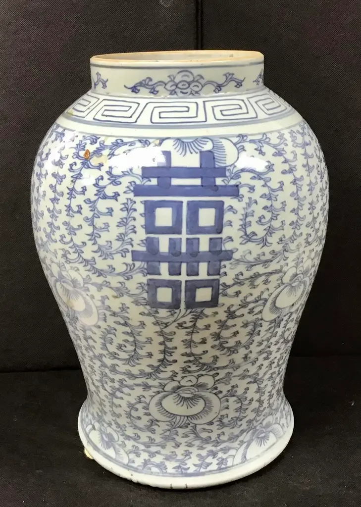 Chinese Blue And White Porcelain Double Happiness Temple Jar, Circa 19th Century