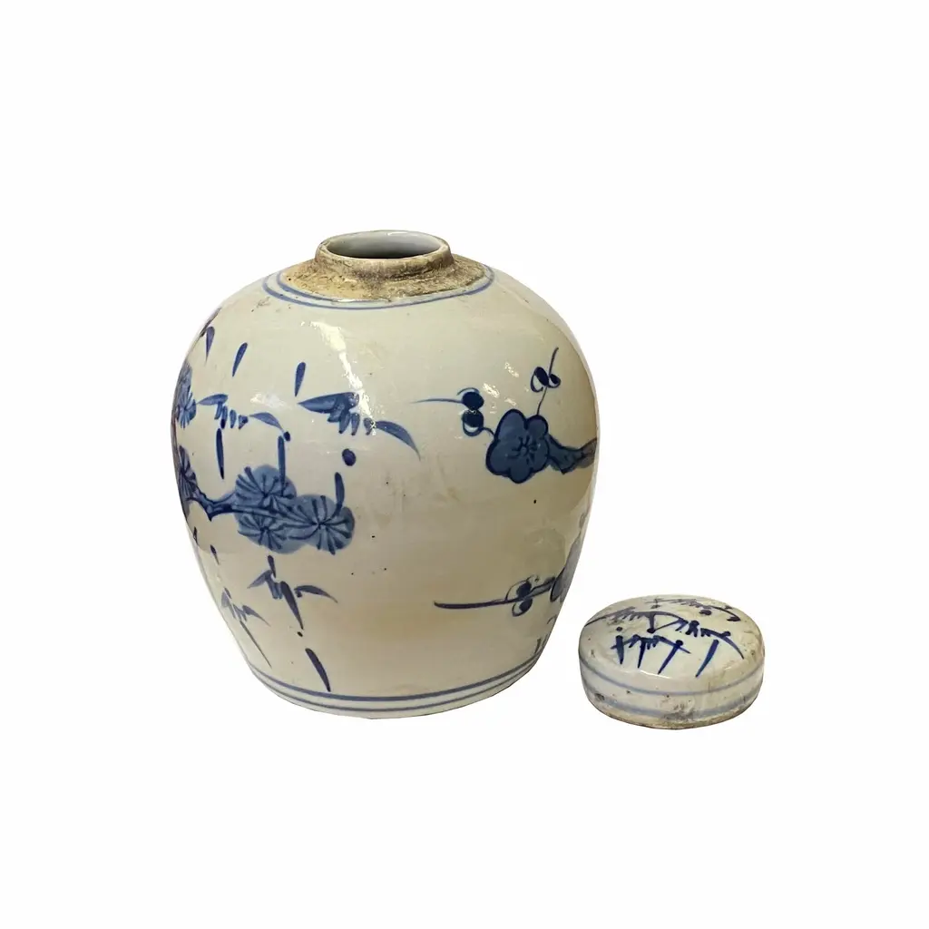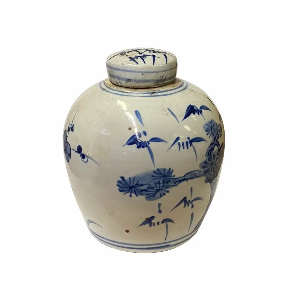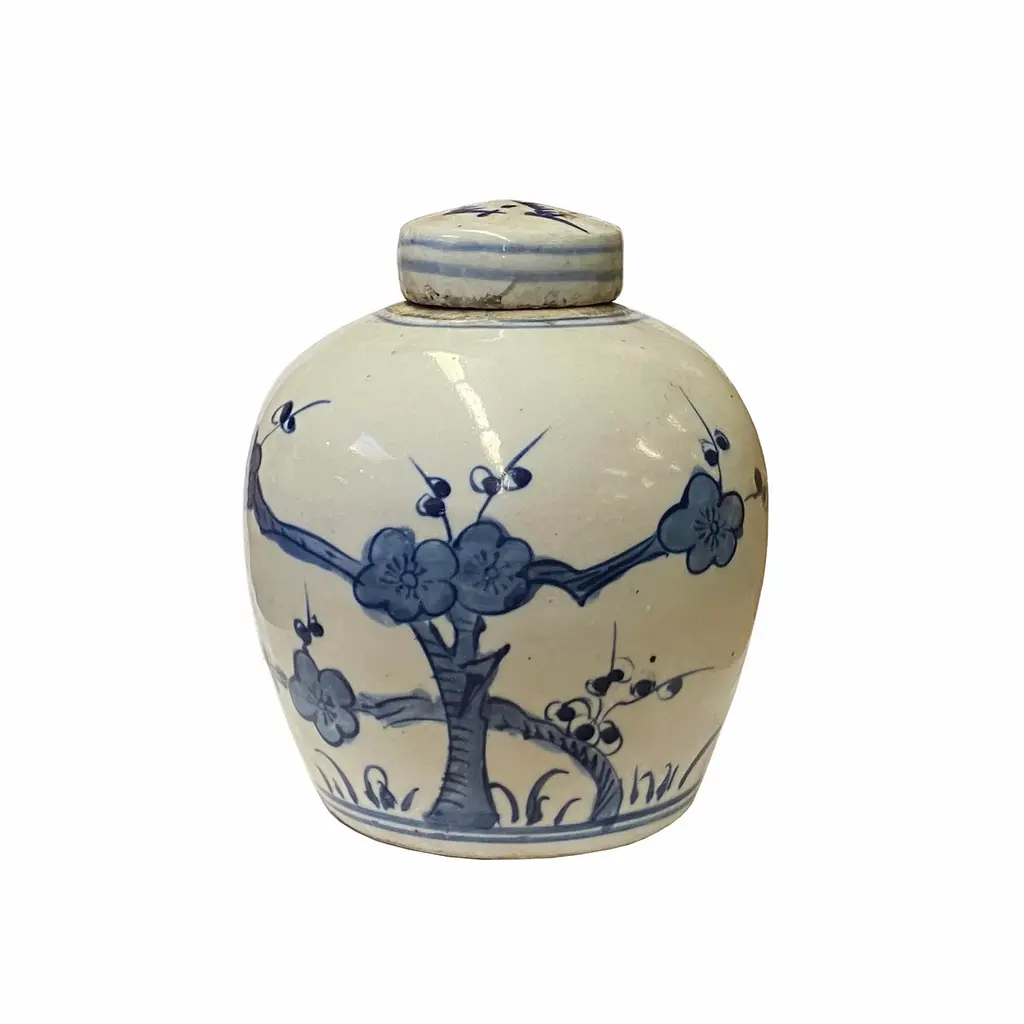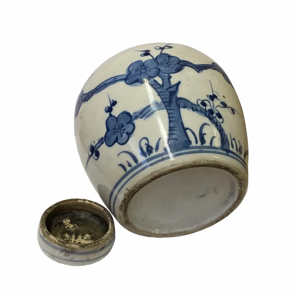 Chinese Oriental Small Blue White Flower Tree Porcelain Ginger Jar