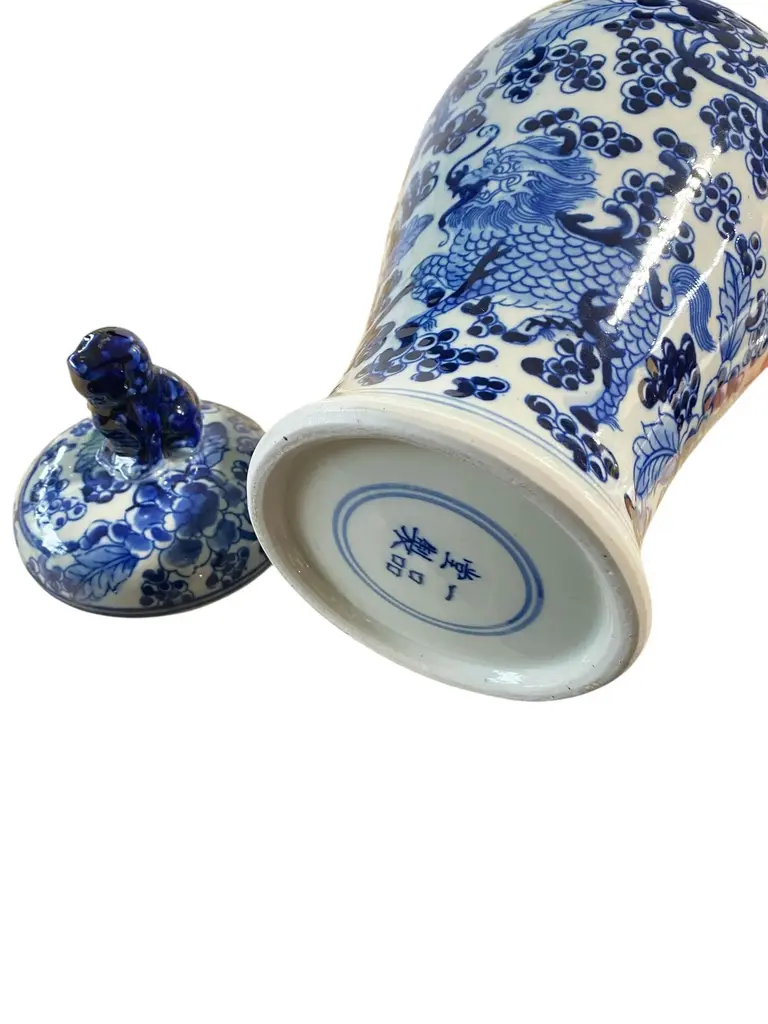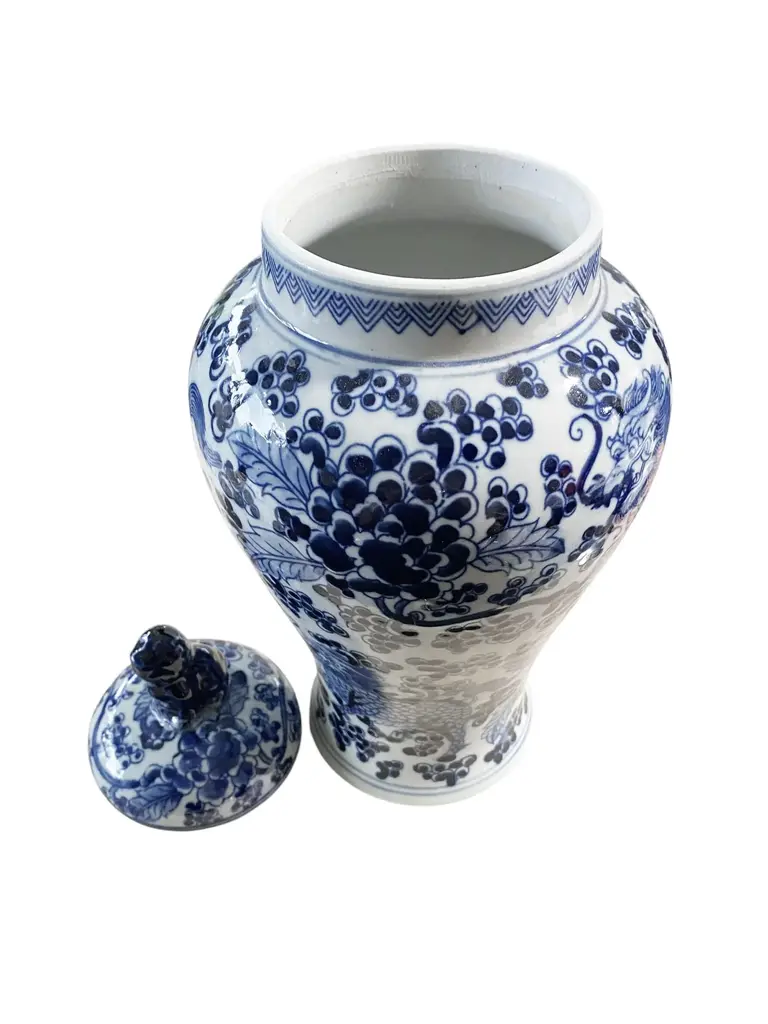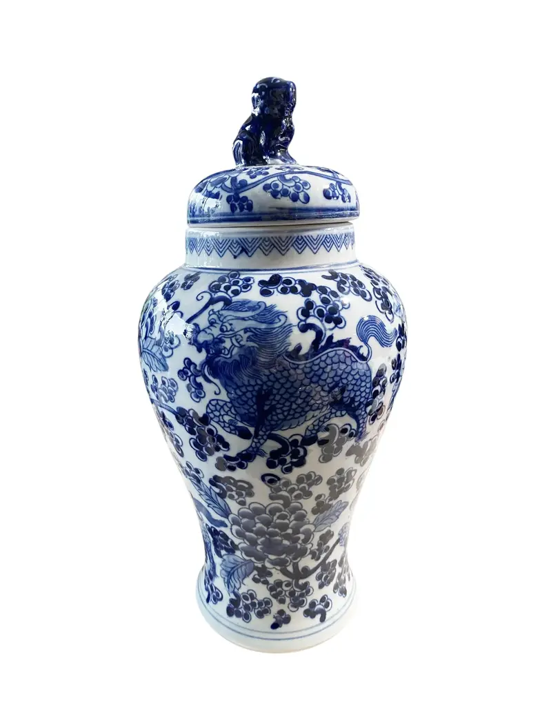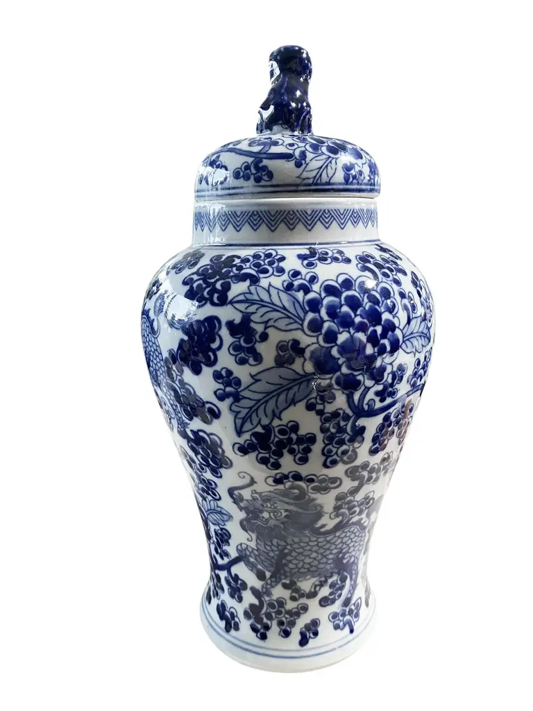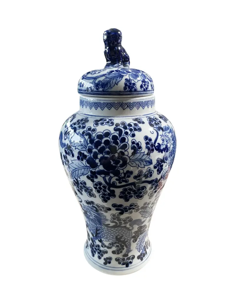 Chinoiserie Blue And White Porcelain Covered Jar 13" H
