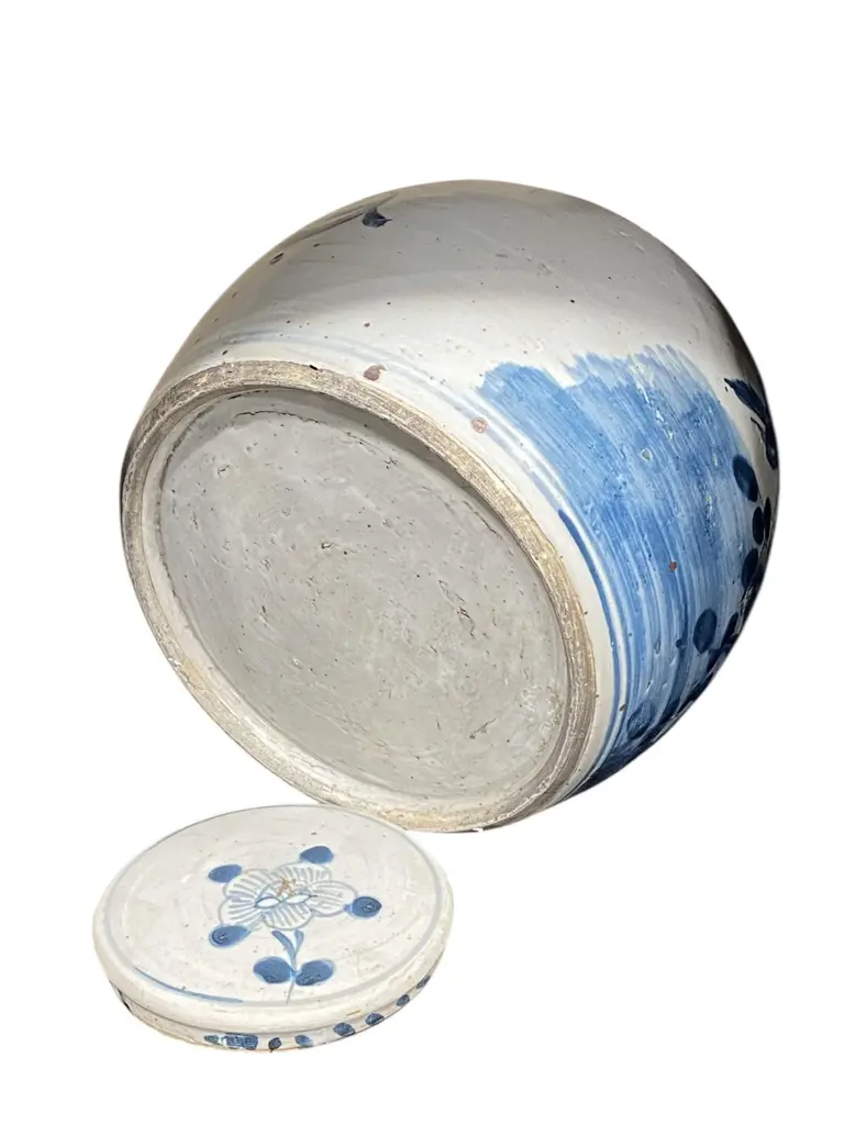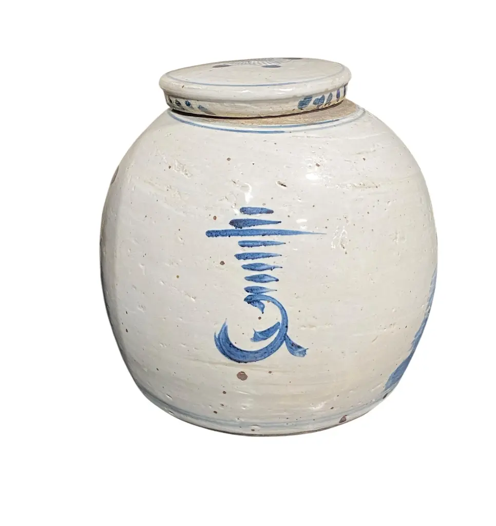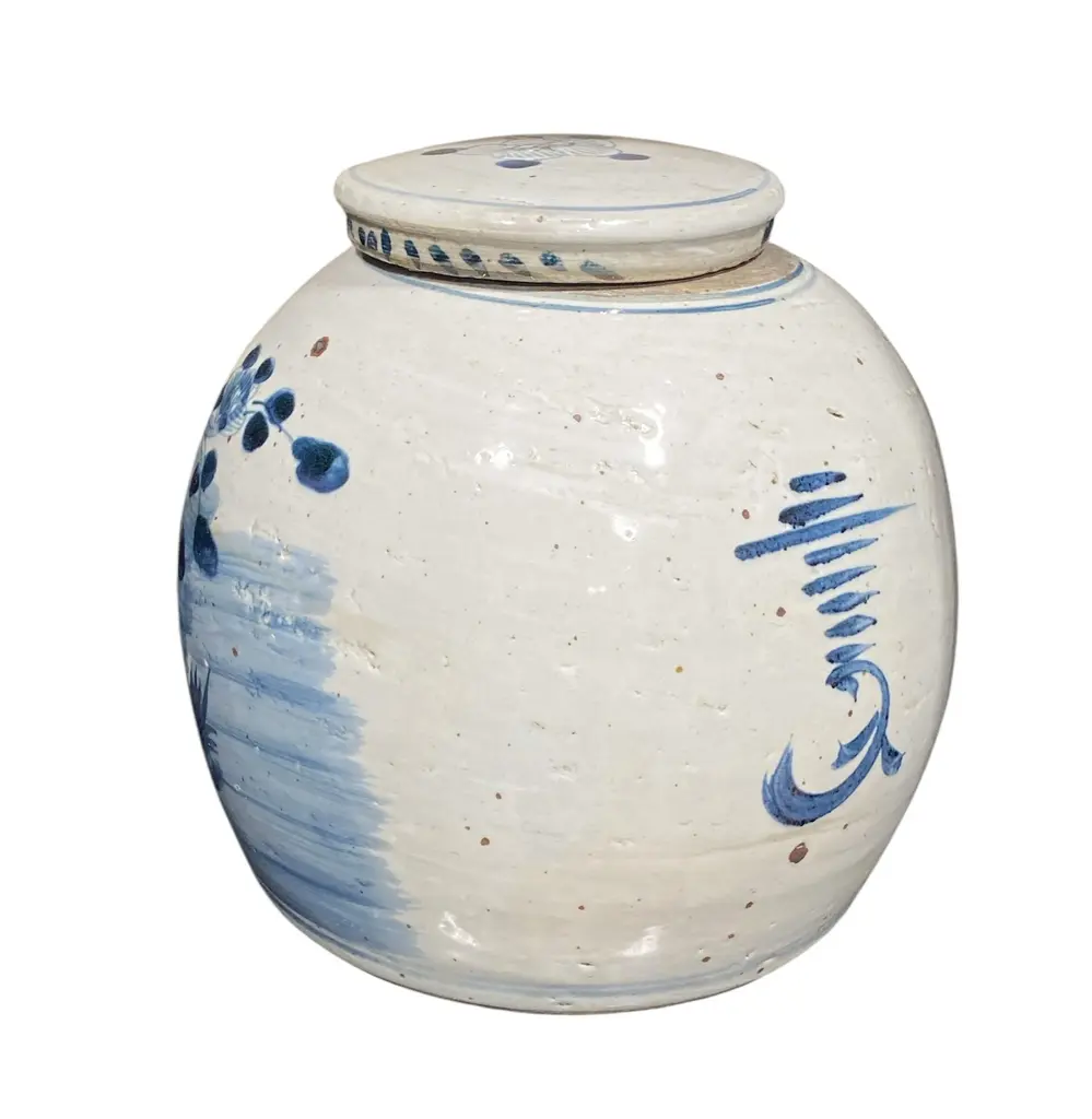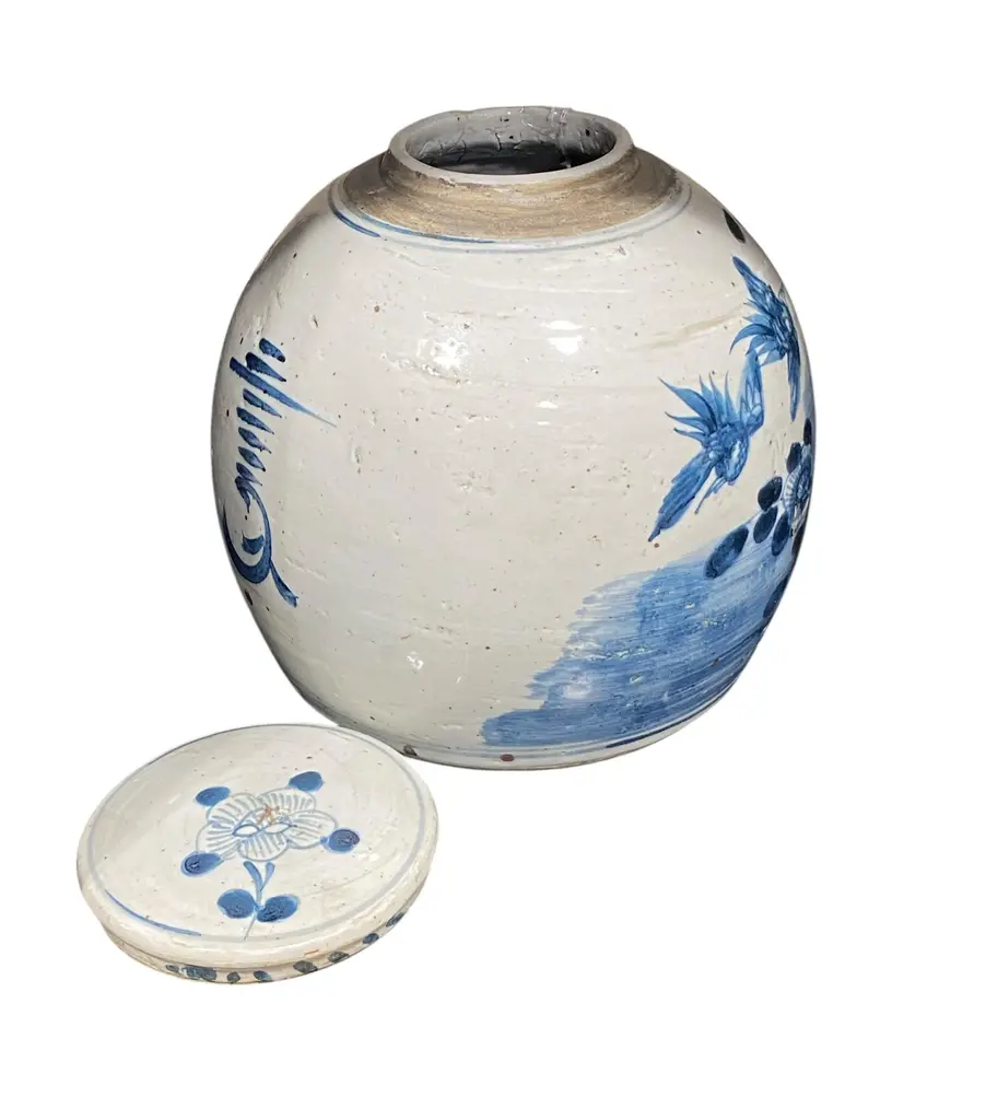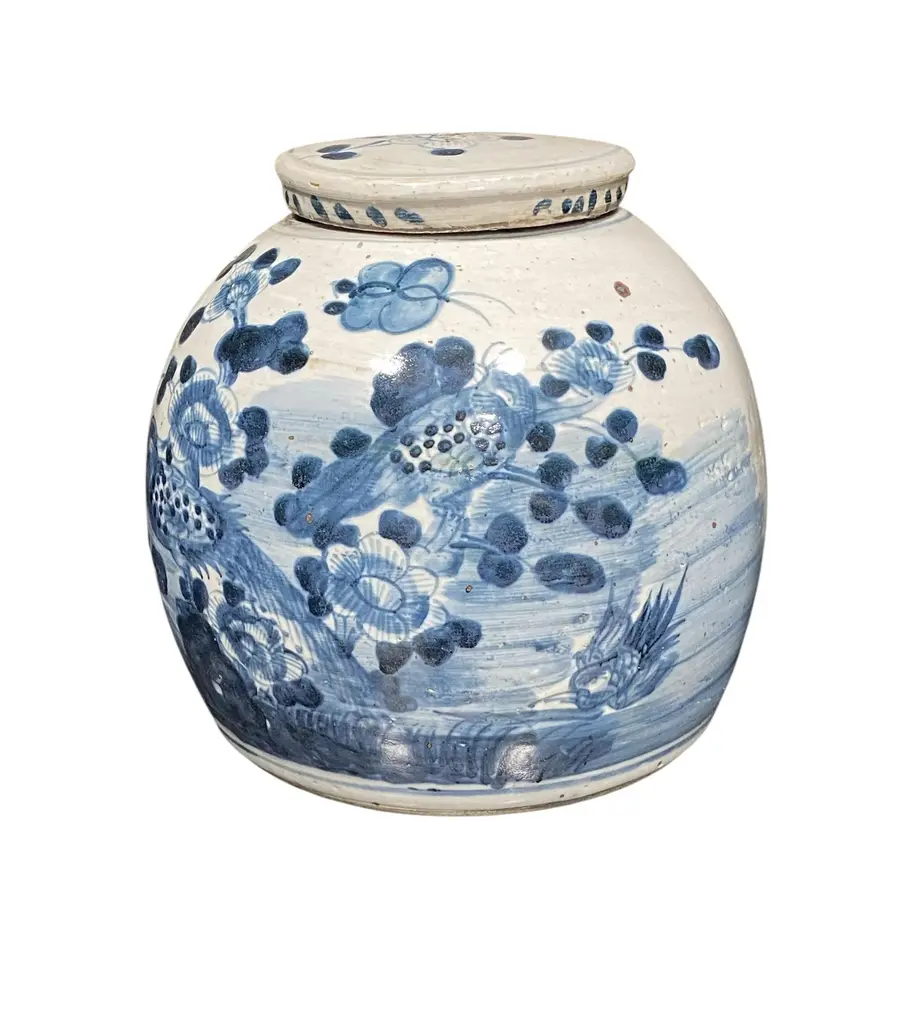 Chinoiserie Blue & White Porcelain Ginger Jar 10" H