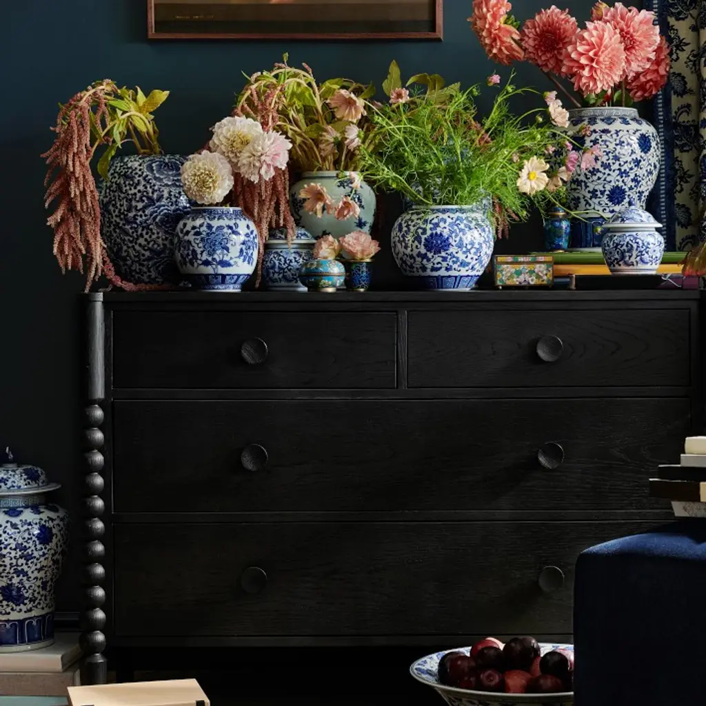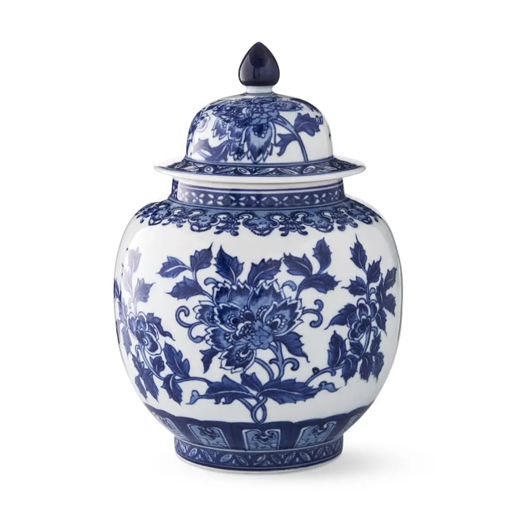 With its serene design and graceful proportions, our lidded ginger jar brings Ming style into the modern home. Hand made of porcelain in the Qing Hua Ci tradition, the jar is hand painted with a chrysanthemum motif in timeless cobalt blue.
