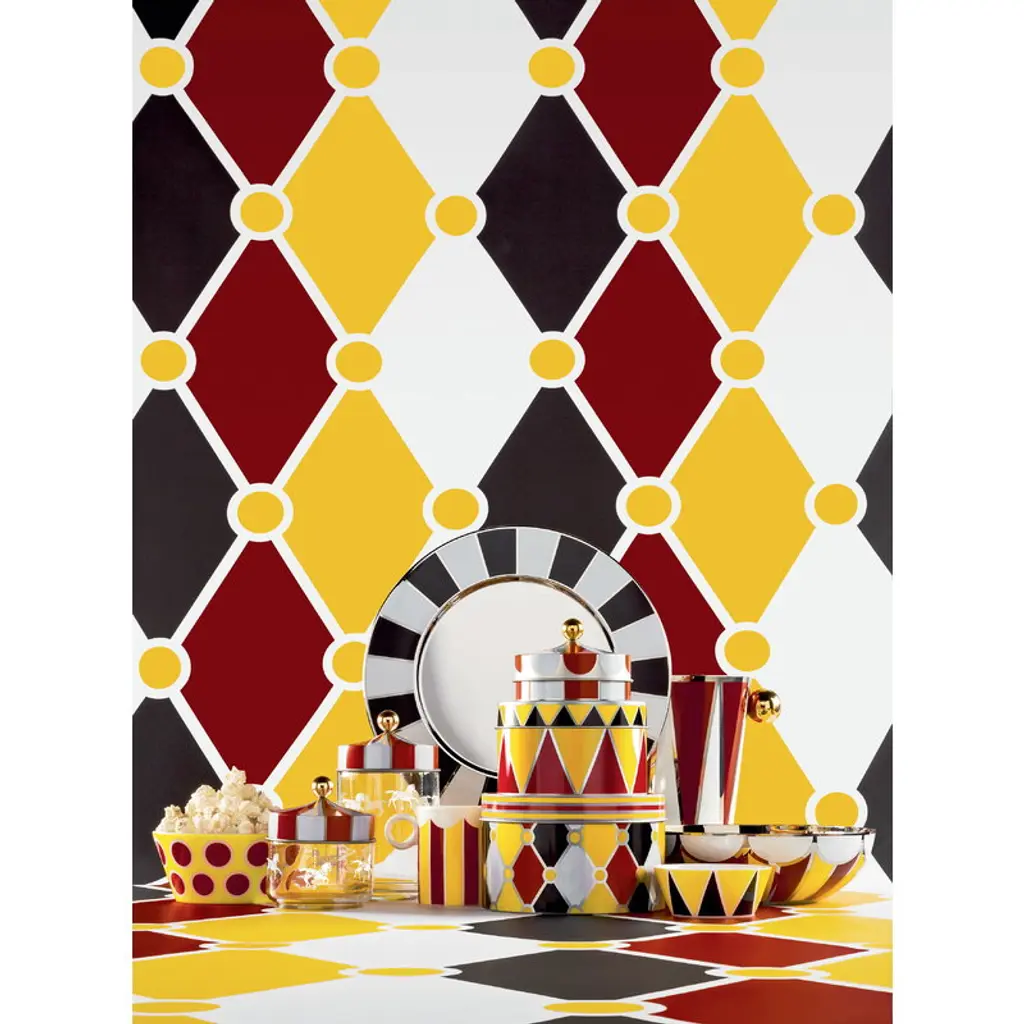 Alessi’s Circus glass jars are decorated with white carousel horses. The red and white tinplate lid features a sealing ring and a golden knob. The canisters are available in different sizes. Circus is a playful kitchen and serving collection designed by Marcel Wanders for the Italian design brand Alessi. The collection was inspired by the ambience of old, colorful circus tents, where bright shades of yellow and red combine with strong black and white patterns and the shine of gold and silver. The Circus collection transforms the delightful spirit of old-time circus into a modern shape and fills the table with joyful atmosphere.