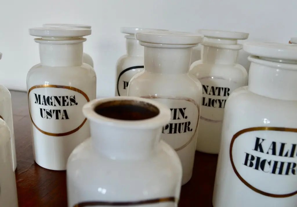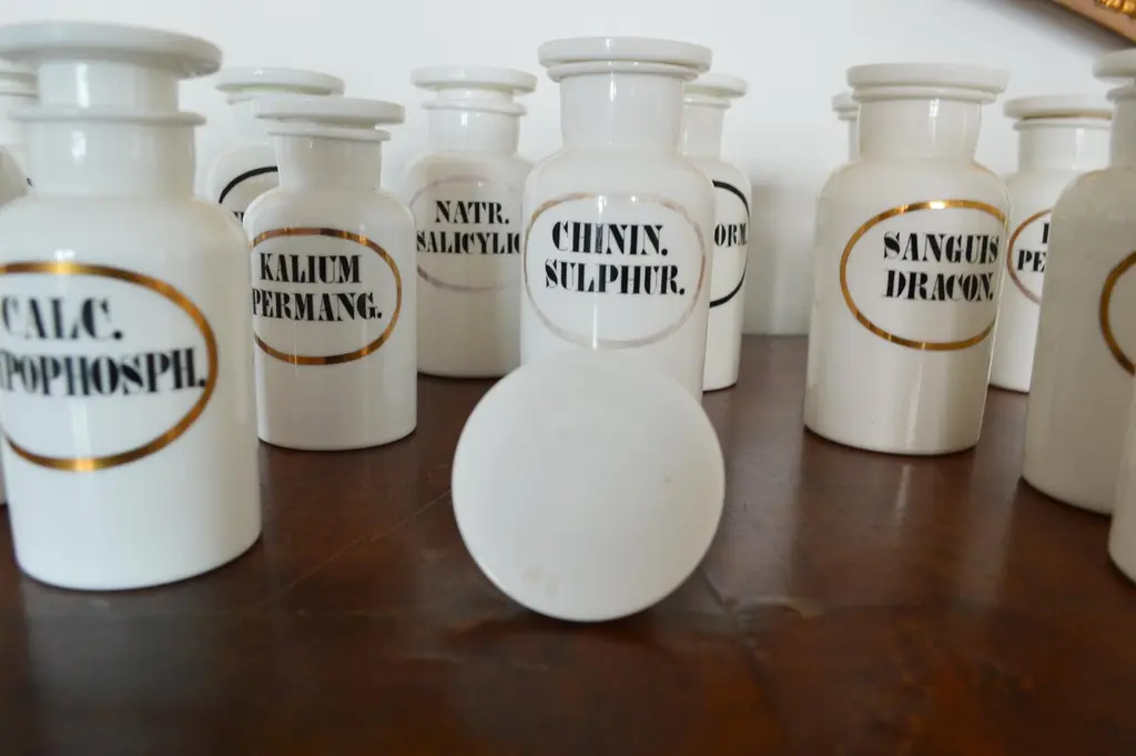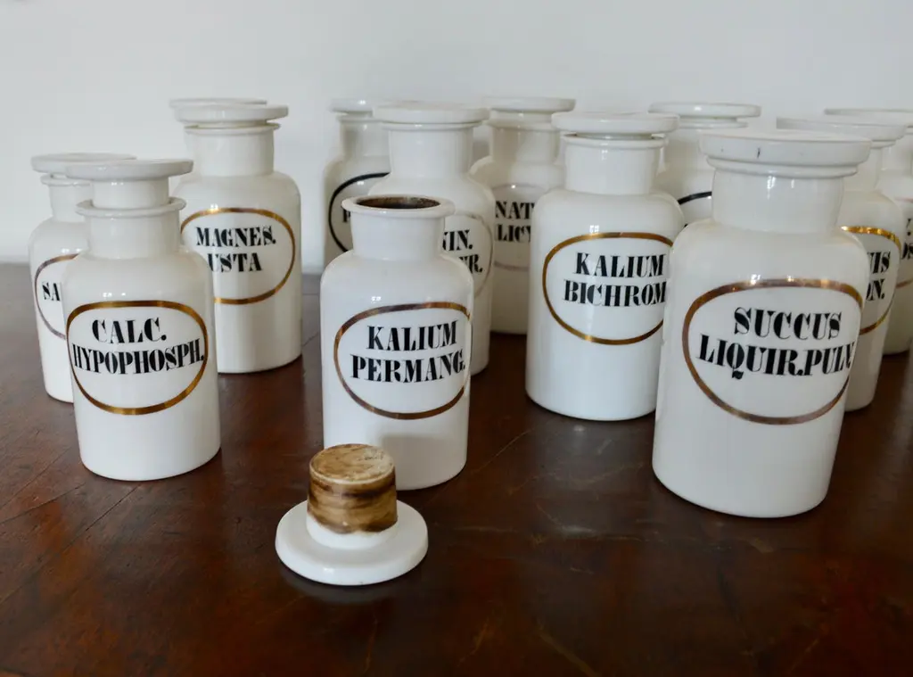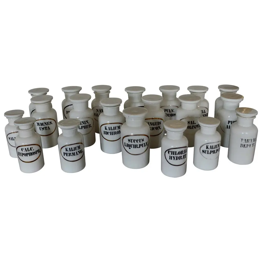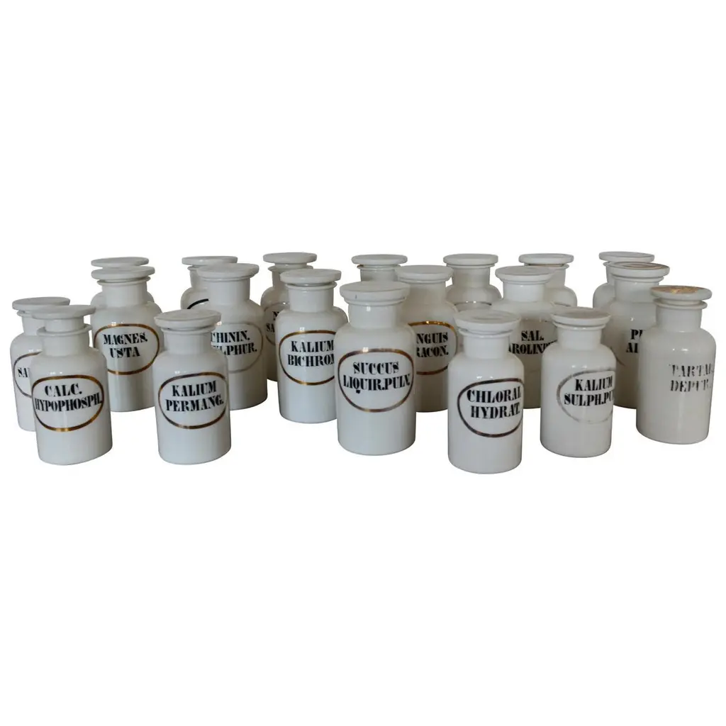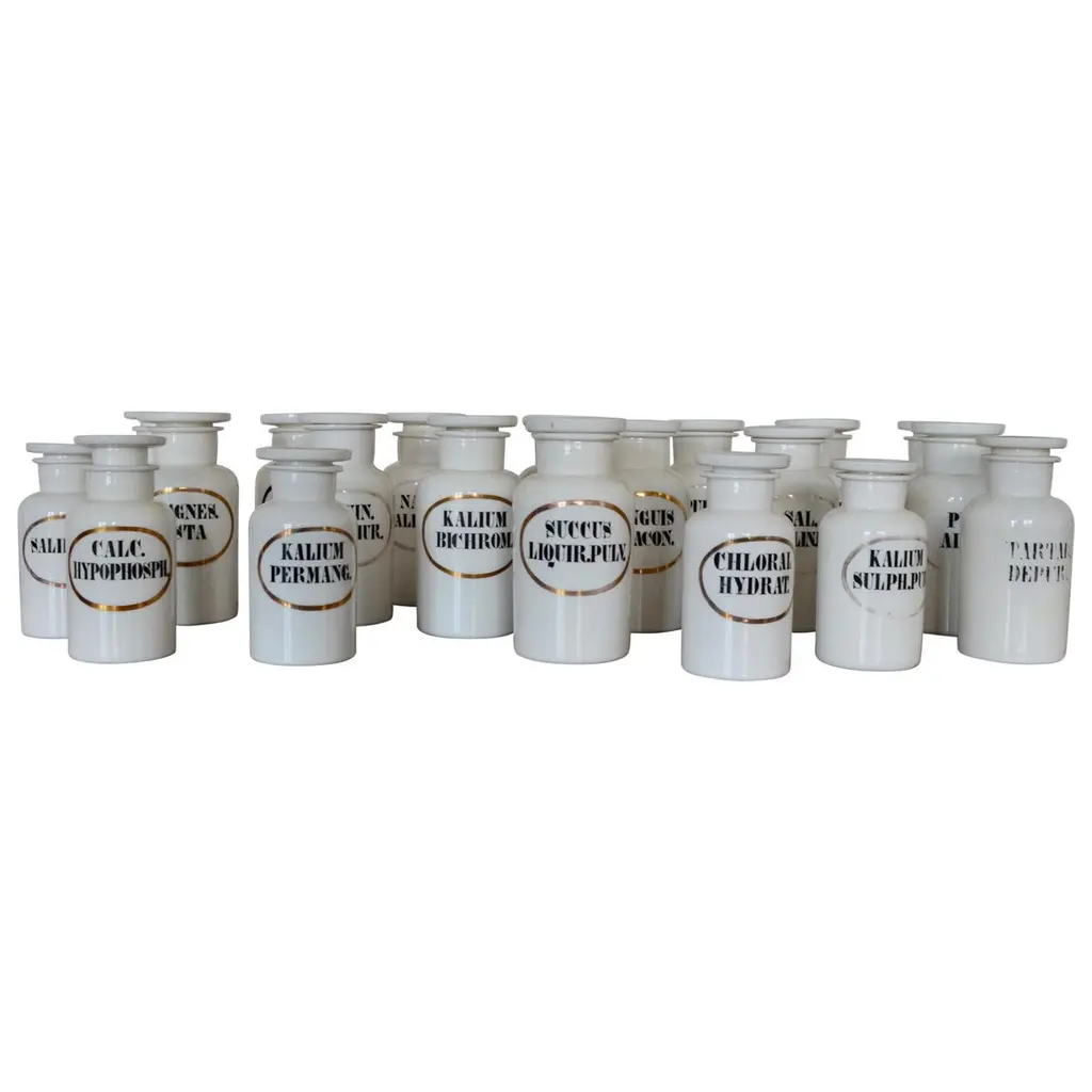 Collection of 20 opaline apothecary jars from the 19th century.Collection consists of 14 larger jars and 6 smaller jars.