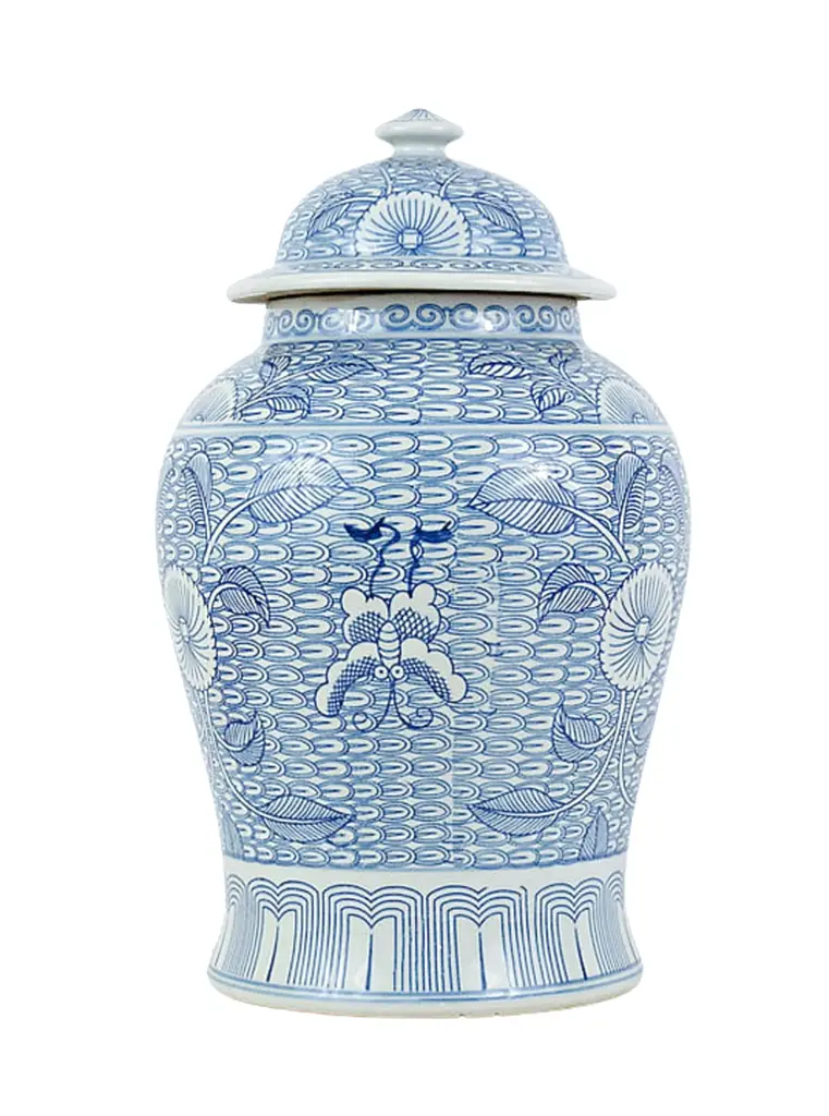 Contemporary Tessellated Flower Porcelain Temple Jar
