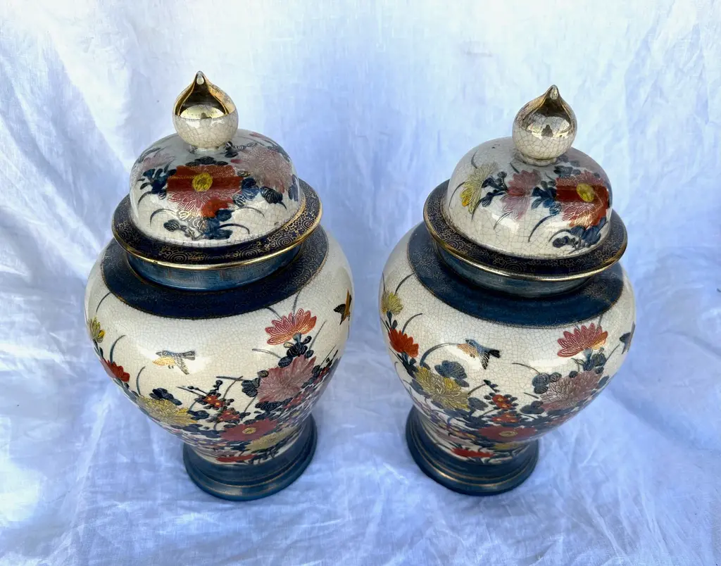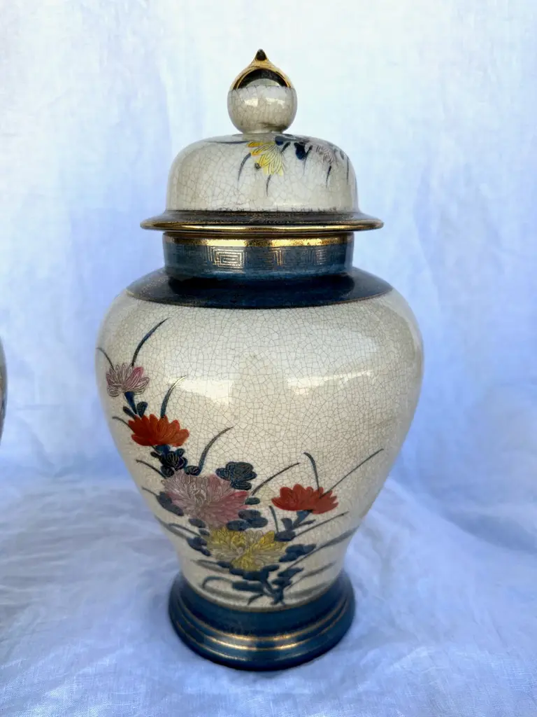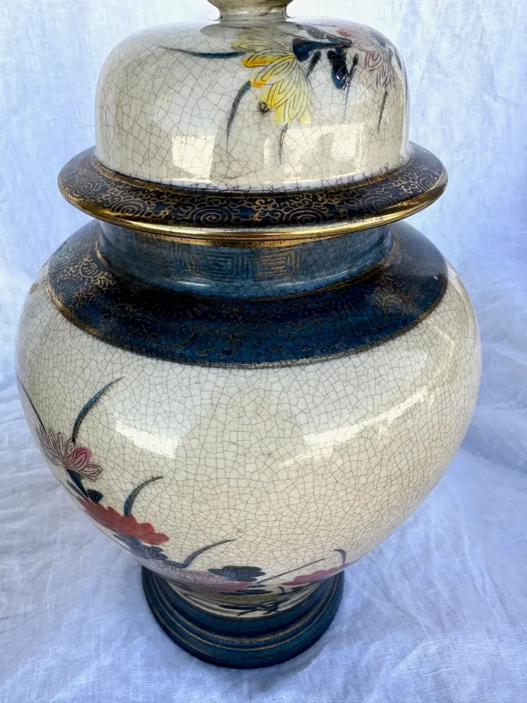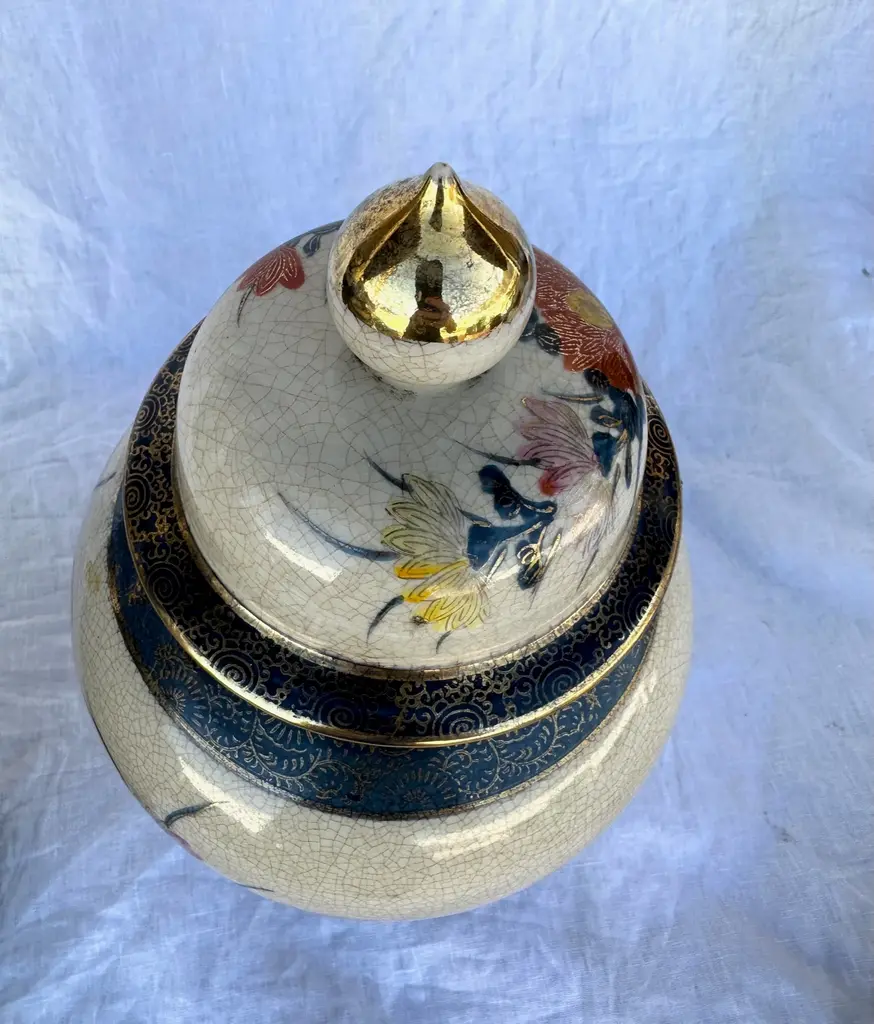 Beautiful Floral crackle finish with gold details Ginger Jar. Hand painted throughout with birds and floral motif. I have 2, price is for 1. 15in h x 8in round Make sure to follow me, I have flash sales for my followers only A1