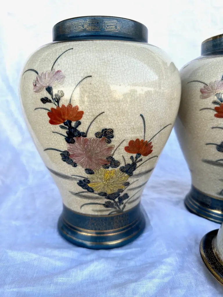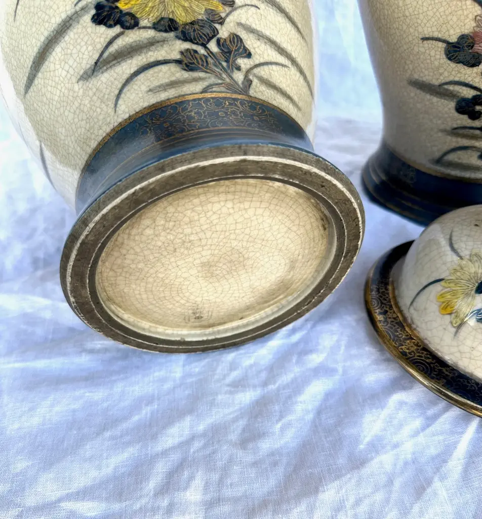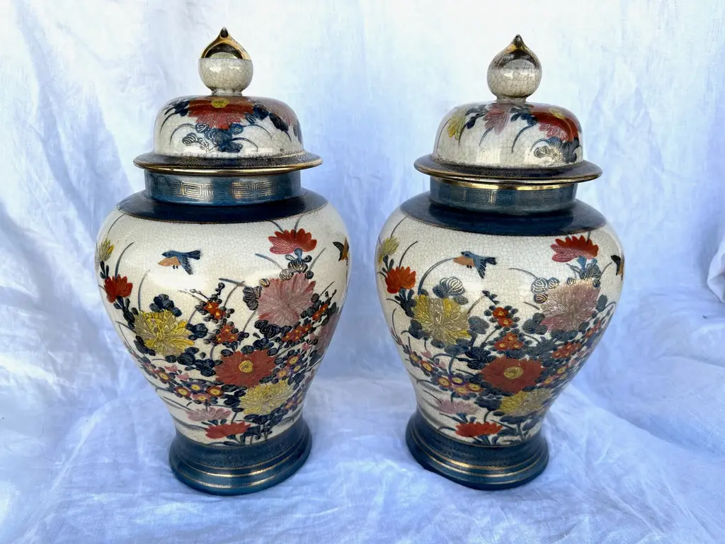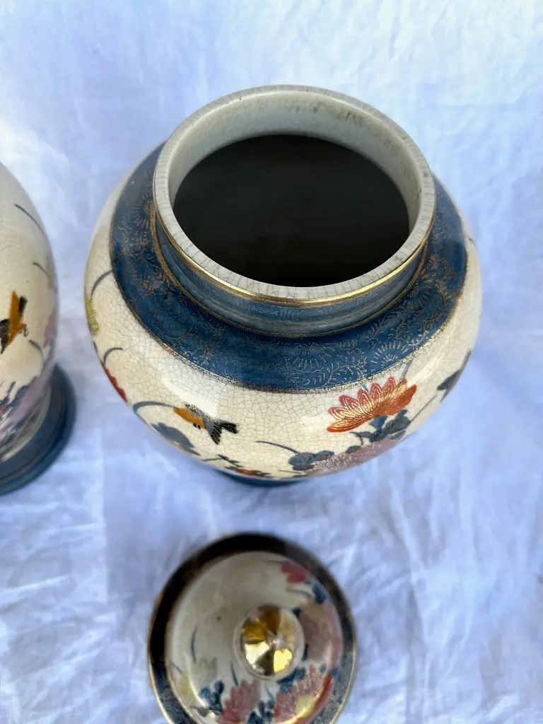 Beautiful Floral crackle finish with gold details Ginger Jar. Hand painted throughout with birds and floral motif. I have 2, price is for 1. 15in h x 8in round Make sure to follow me, I have flash sales for my followers only A1