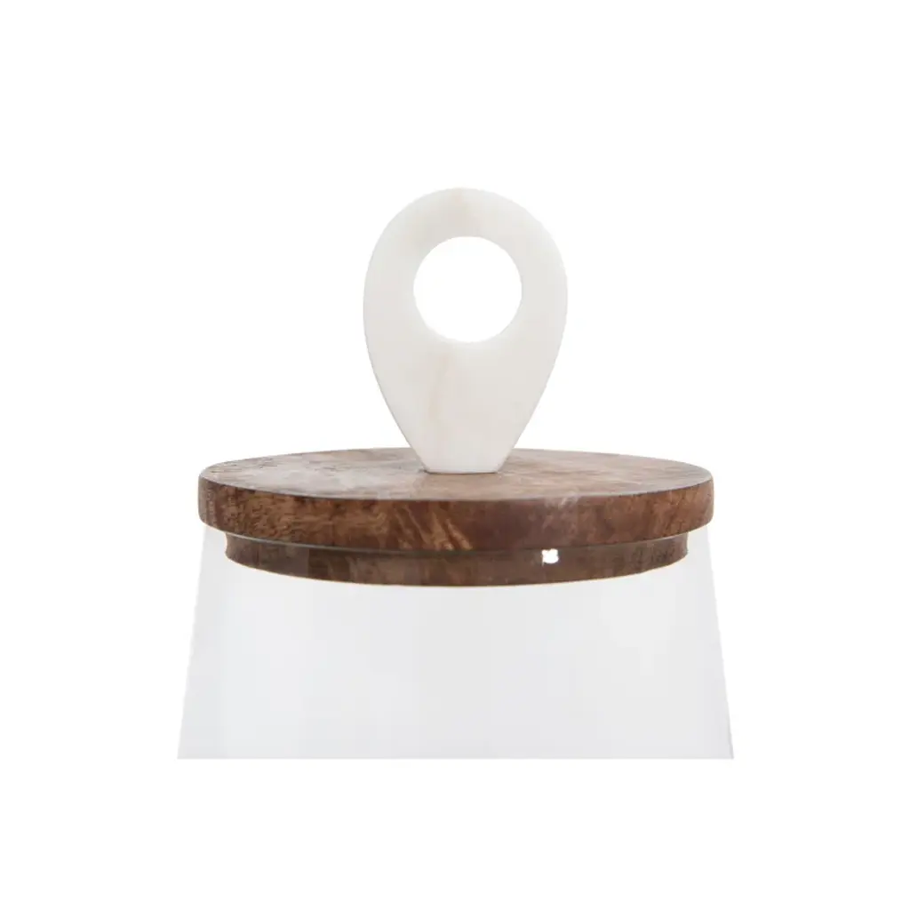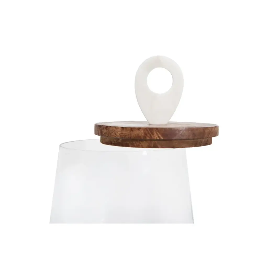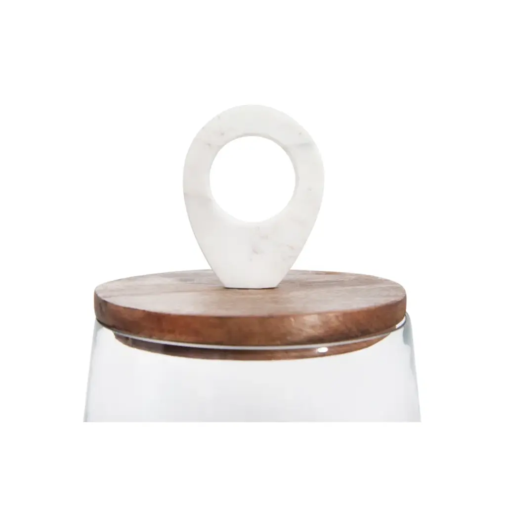 Fun to display items in, this clear glass jar will give full view of the food or decorative objects inside. Fill with vintage colored marbles or a collection of coins. It could also hold a collection of matches to be displayed on the fireplace mantel.