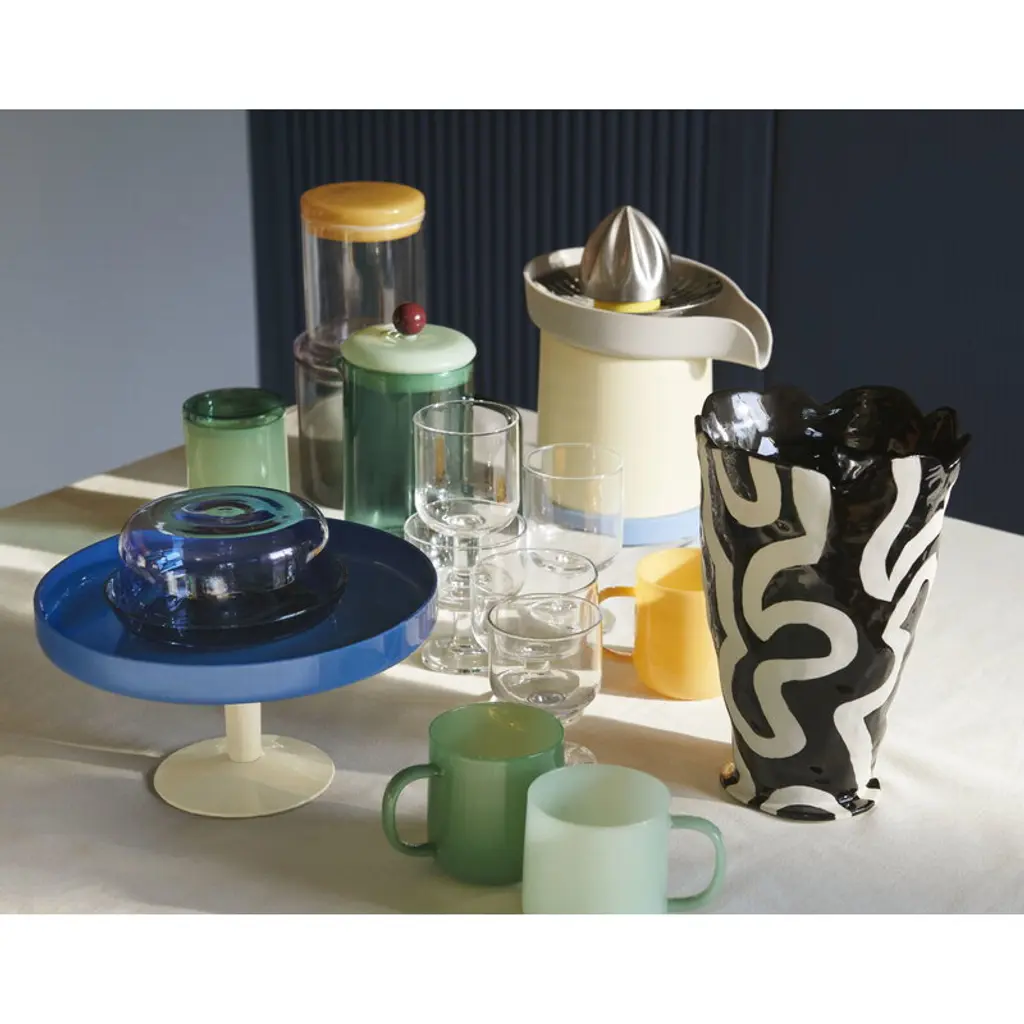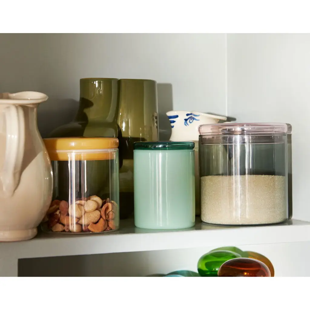 HAY’s simple yet stunning glass jar features a soft, rounded silhouette and a clever glass lid. Made of strong borosilicate glass, the jar is extremely durable and doesn’t break easily. The glass lid is equipped with a silicone ring that keeps the jar tightly closed. Perfected with fresh colors, HAY’s glass jars are a delightful and practical addition to the décor: use them for example to store your favorite snacks or organize your bathroom in style.