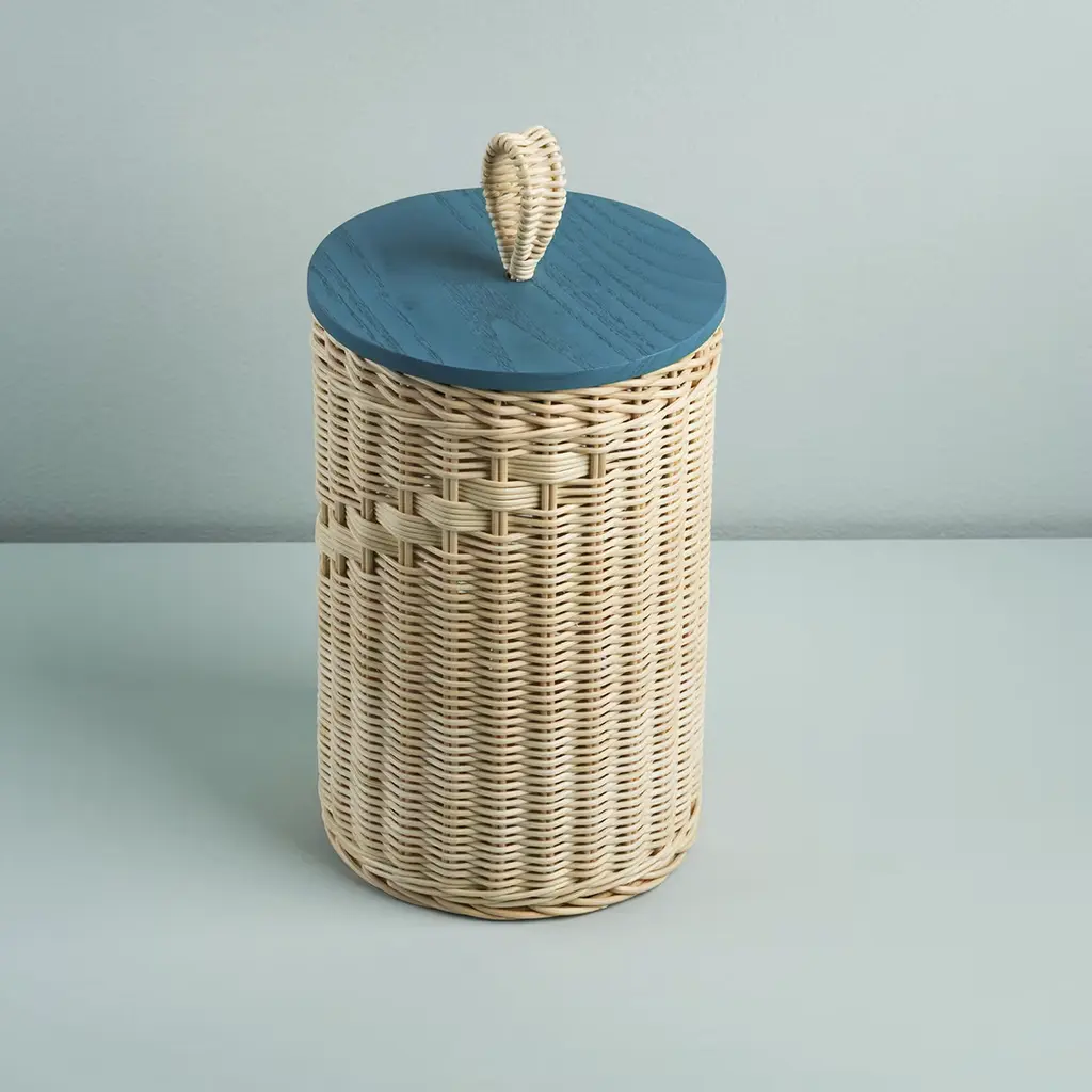 Goccia Tall Wicker Jar With Peacock Blue Lid