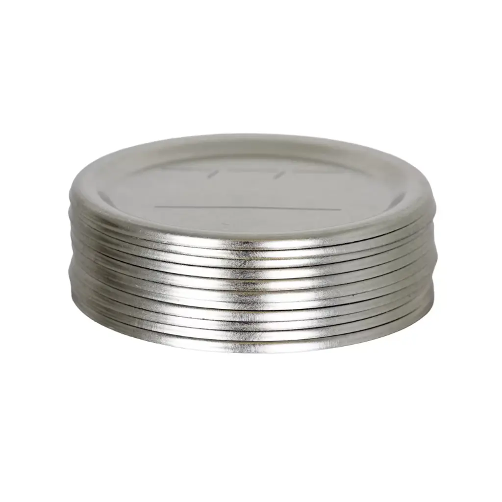 Stock up on Regular-Mouth Canning Lids Ready to preserve the harvest? These essential canning lids fit regular-mouth jars and come in a variety of quantities - perfect for everything from small batches to your biggest canning days! Includes lids only. Fits regular-mouth glass canning jars (you supply). BPA-free sealing compound ensures a quality air-tight seal. Great for any home canner, beginners and seasoned pros - choose the quantity you need. Metal. Packaging Dimensions: One 12-Pack (12 individual lids): 2.875"L x 2.875"W x 0.885"H, 0.2 lb. 6 packs of 12 (72 individual lids): 2.875"L x 2.875"W x 5.31"H, 1.1 lb. . 12 packs of 12 (144 individual lids): 2.875"L x 2.875"W x 10.62"H, 2.2 lb. 24 Packs of 12 (288 individual lids): 11.375"L x 6.313"W x 2.88"H, 4.5 lb. 48 Packs of 12 (576 individual lids): 11.375"L x 6.313"W x 5.76"H, 8.9 lb. Origin: China Note: Our larger packs come in multiple boxes (except for the single pack of 12)
