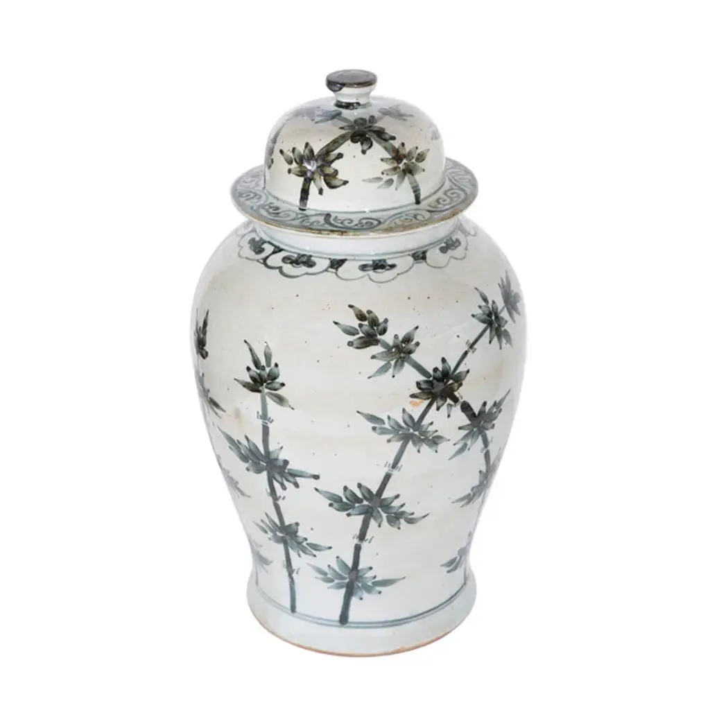 Indigo Porcelain Bamboo Motif Temple Jar by Legends Of Asia