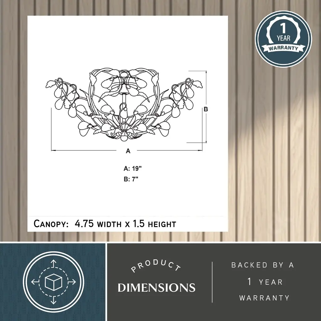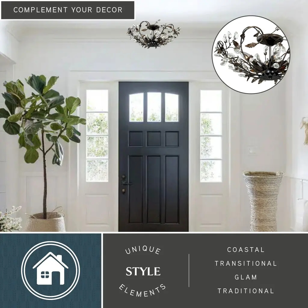 Jardin 19-In W Crystal Bronze Vintage Vine Semi Flush Mount Ceiling Light - 19-In W X 8-In H X 19-In D - Architectural Bronze And Gold Accents - 19-In W X 8-In H X 19-In D