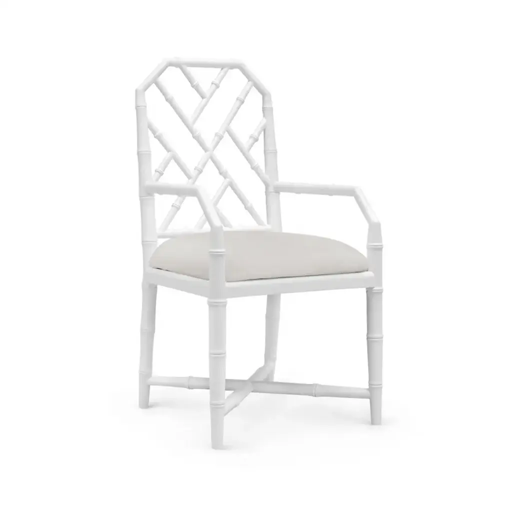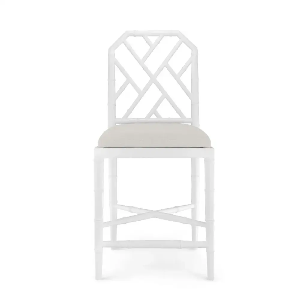 The Jardin Collection revisits one of Villa & House’s beloved design motifs, inspired by classic Chinoiseries. A rich lacquered finish adds to the sophistication of the design, which sees solid mahogany artisanally hand-carved to resemble bamboo. Decorative lattice fretwork, diagonal stretchers, and gently tapered legs add visual and structural interest while maintaining an air of elegant simplicity. Completed with a linen drop in cushion, the Jardin Counter Stool feels at once relaxed and undeniably upscale. Either at a kitchen island or home bar, this stool invites you to sit back in style.