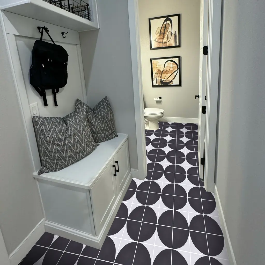 Jardin Handmade Cement Tile, 8X8, White-Black - Set Of 12tiles