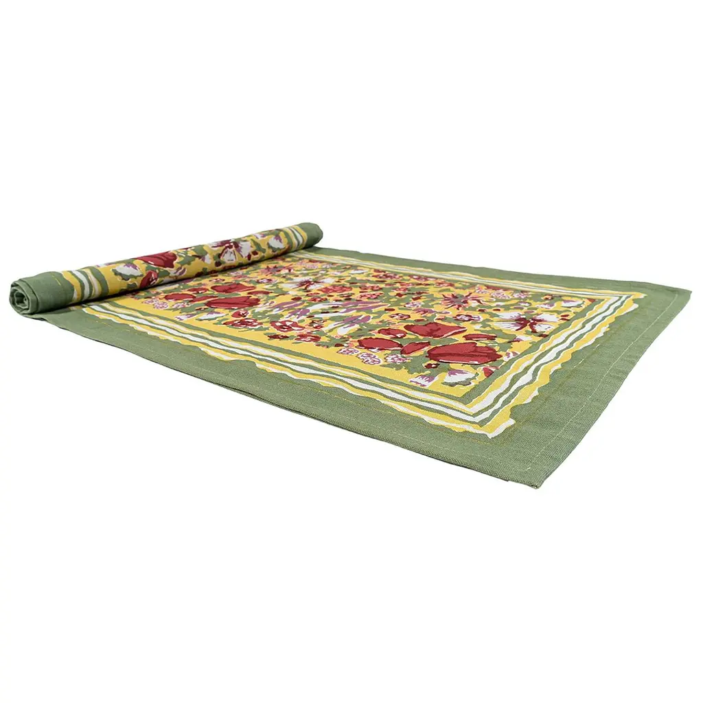 Verdant and lush, the Jardin collection is inspired by the luxuriant, loosely tended gardens of Southern France. The vibrant watercolors of this French linen will enliven any room or outdoor table with a sense of understated beauty and style, whether in spring, summer, or beyond. This fine linen has been carefully handprinted by skilled artisans using a time-honored technique, resulting in a singular piece of craftsmanship.