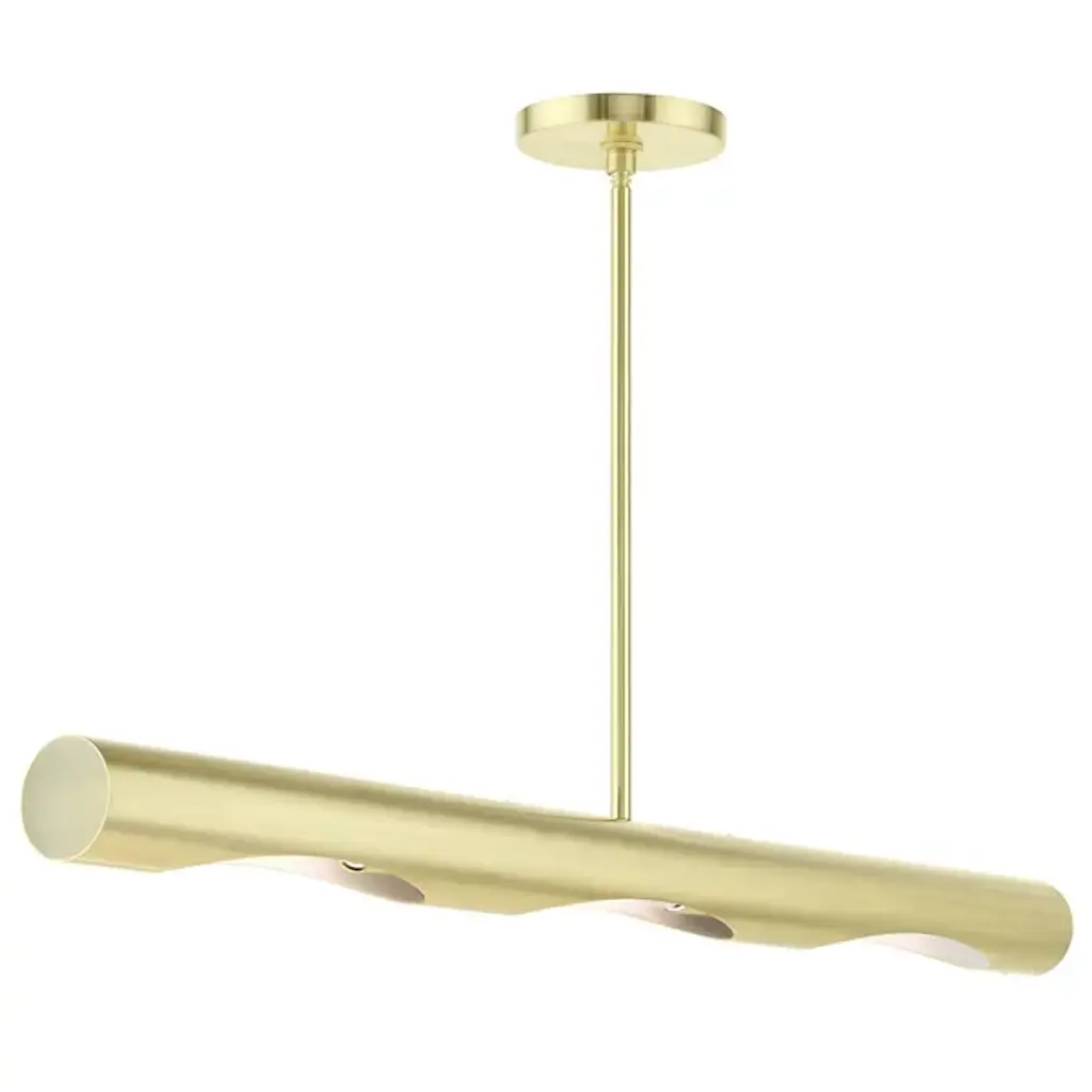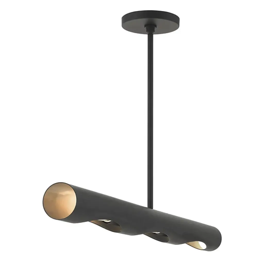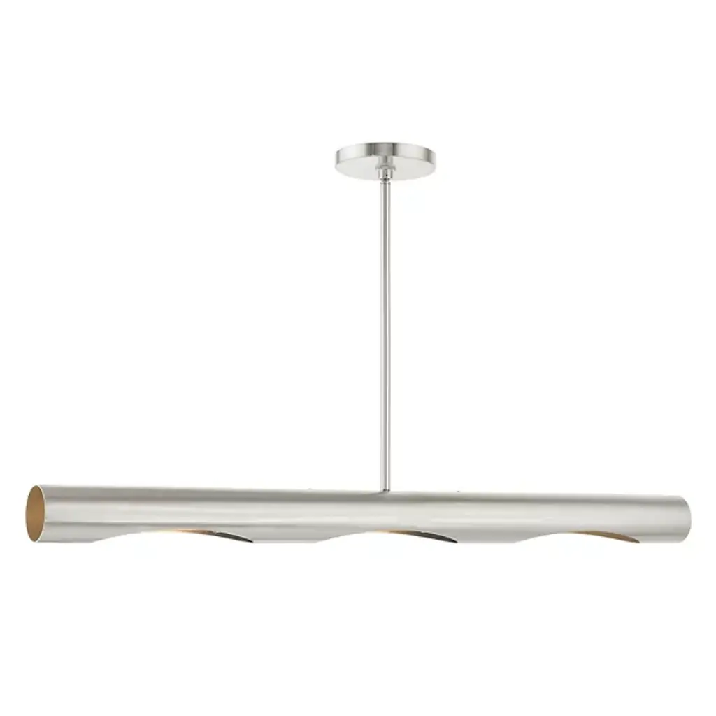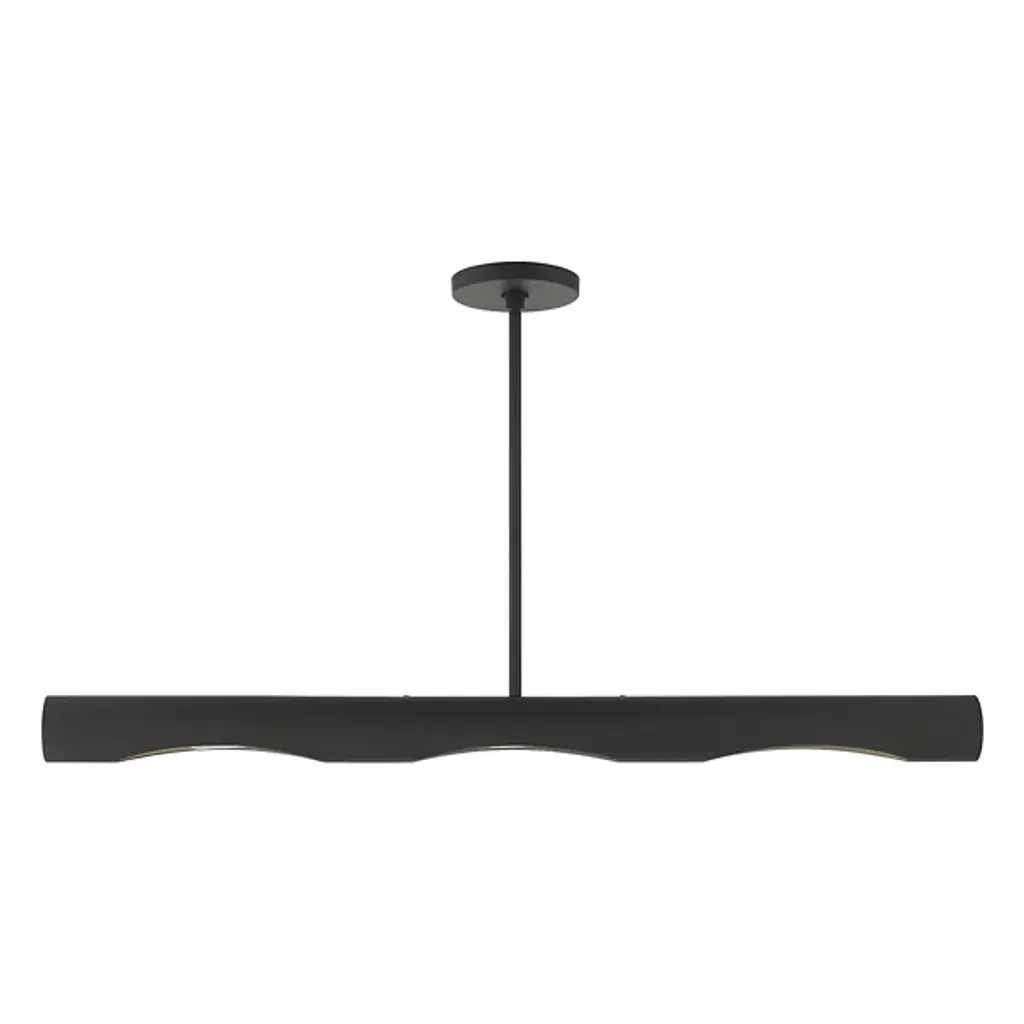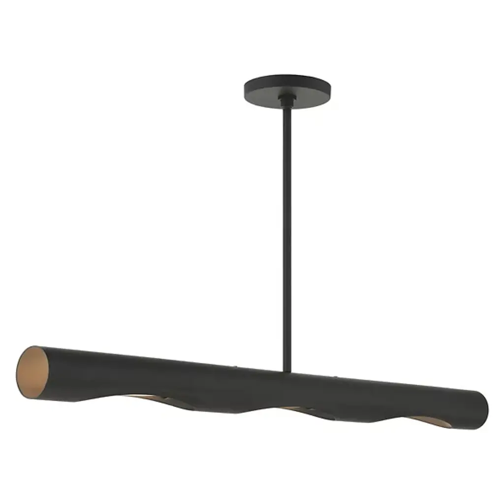 A simple yet unique way to bring a new layer of light to the rooms of your home. The Jared Linear Chandelier from Alder & Ore showcases a modern design made of smooth metal that hangs from the ceiling by a long and thin downrod. The horizontal body contains a set of angled openings in the underside that reveals the bulbs within. The light spreads in a bright and even manner throughout the room.