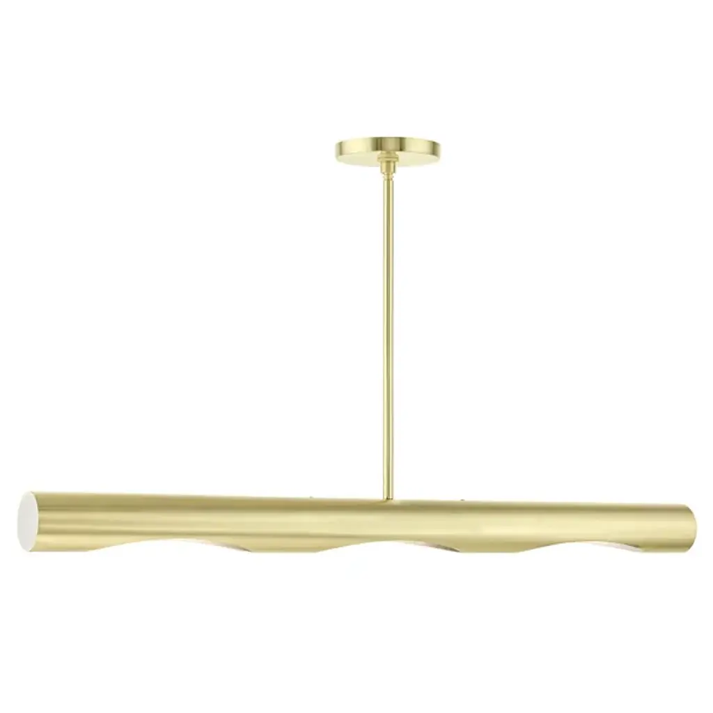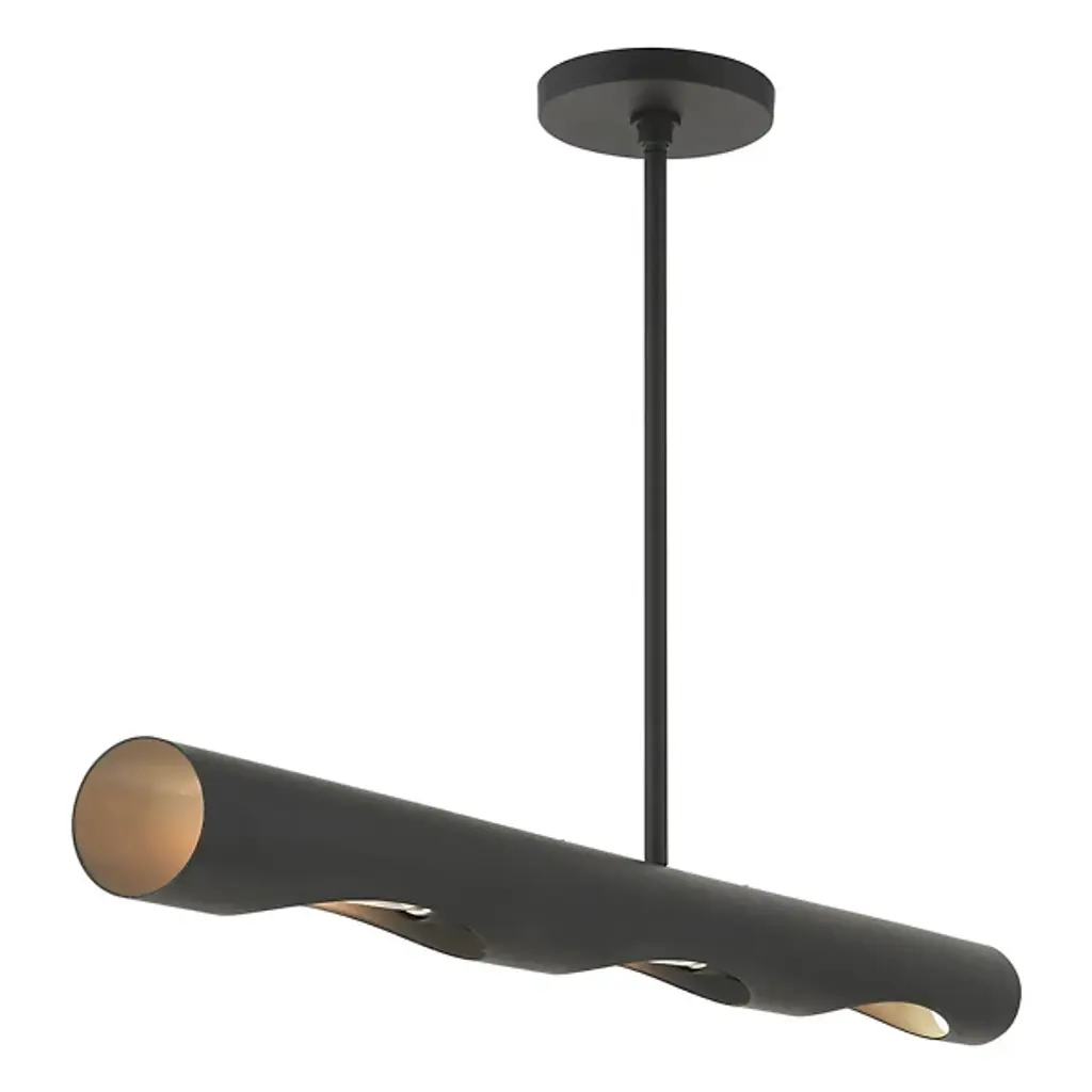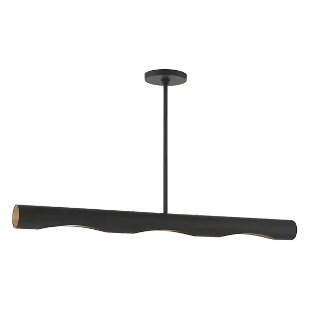 A simple yet unique way to bring a new layer of light to the rooms of your home. The Jared Linear Chandelier from Alder & Ore showcases a modern design made of smooth metal that hangs from the ceiling by a long and thin downrod. The horizontal body contains a set of angled openings in the underside that reveals the bulbs within. The light spreads in a bright and even manner throughout the room.