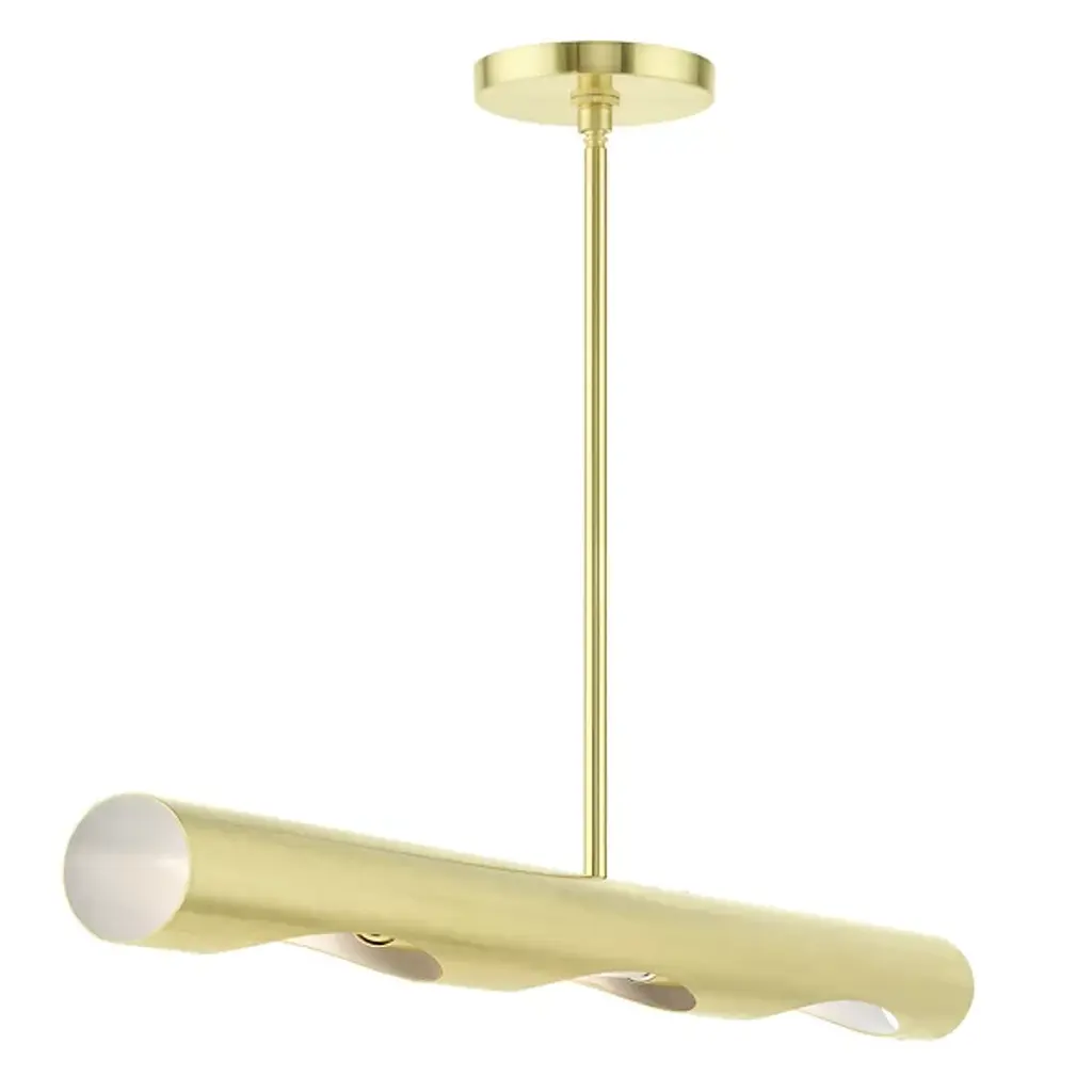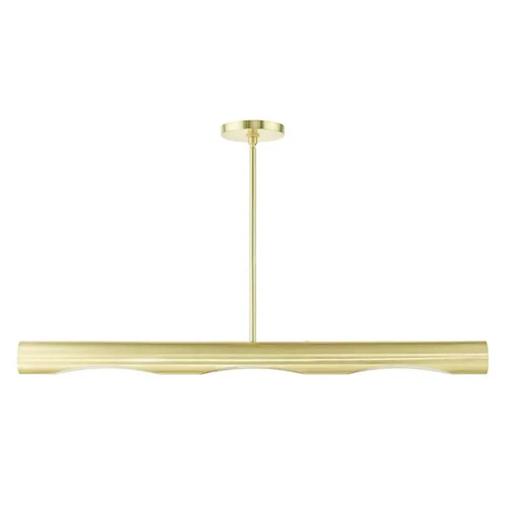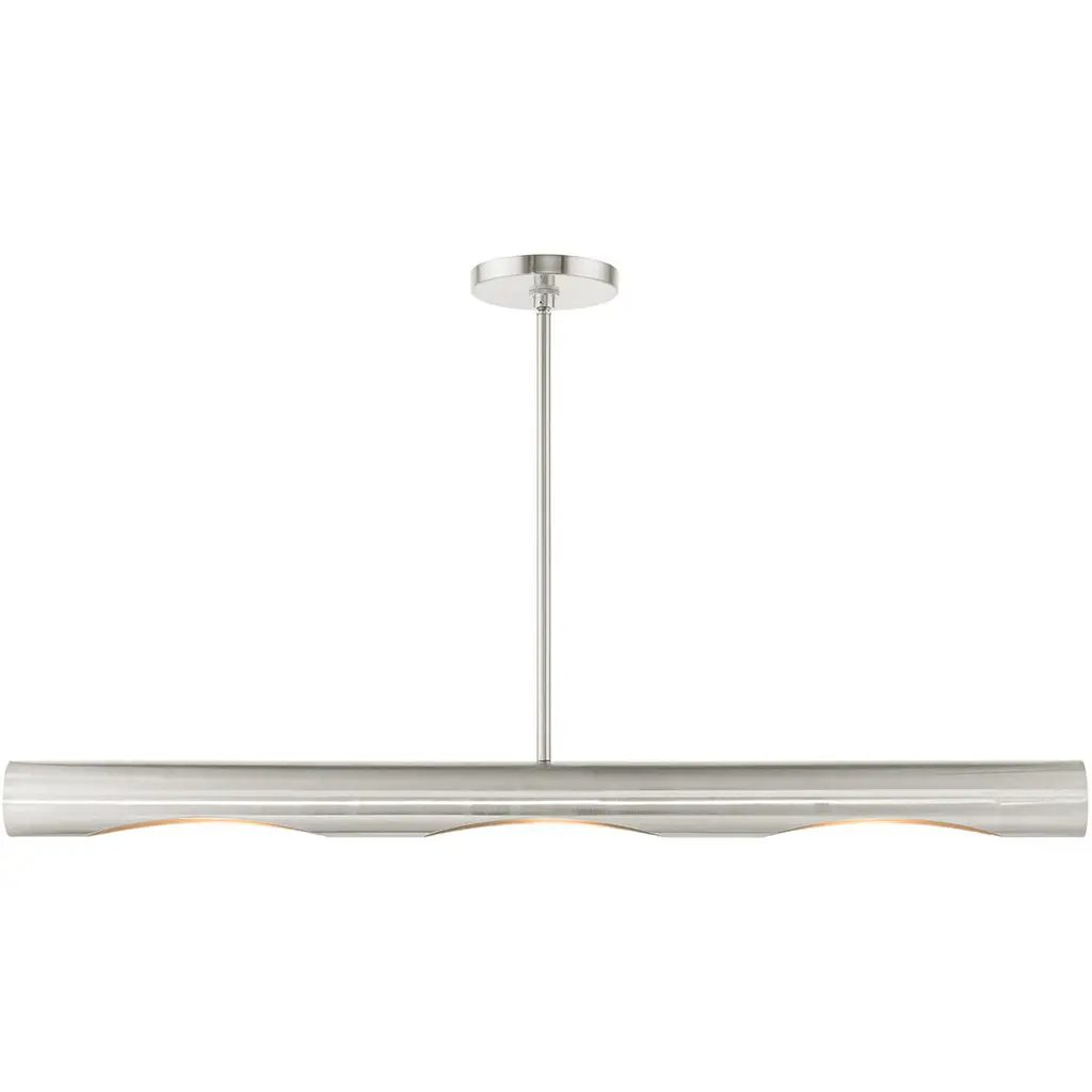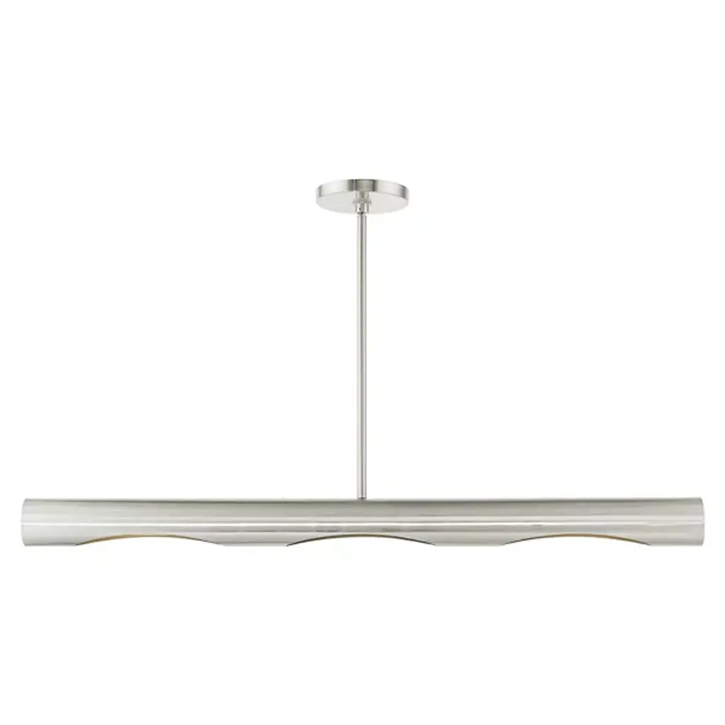 A simple yet unique way to bring a new layer of light to the rooms of your home. The Jared Linear Chandelier from Alder & Ore showcases a modern design made of smooth metal that hangs from the ceiling by a long and thin downrod. The horizontal body contains a set of angled openings in the underside that reveals the bulbs within. The light spreads in a bright and even manner throughout the room.