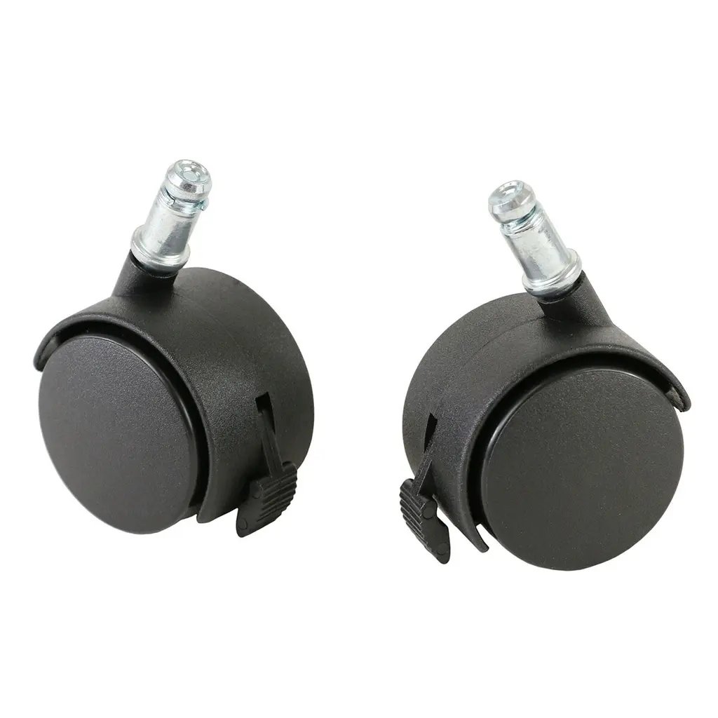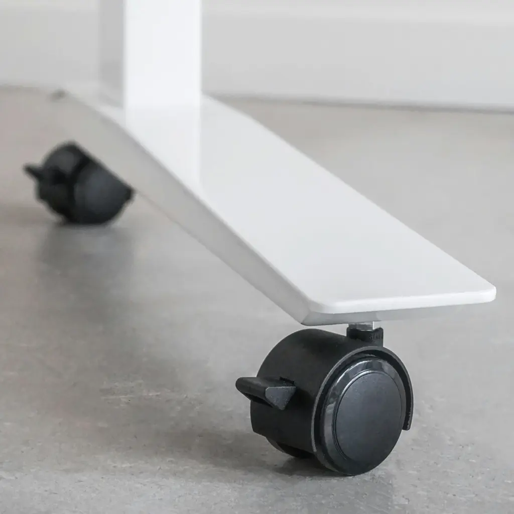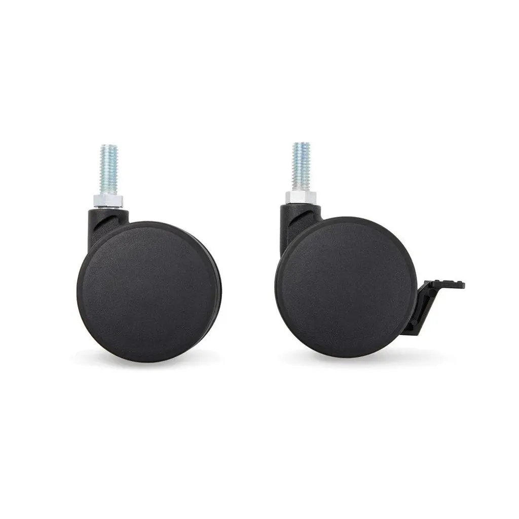 Made of durable plastic, Jarvis Casters attach to the feet of the Jarvis Desk, making it easy to move from room to room – whether for meetings or a change of scene. They lock individually to keep your workstation firmly in place. Casters add two inches to the height of a Jarvis Desk and feature a 440-pound weight capacity and rubberized rolling surface to help protect hard floors. Sold individually.