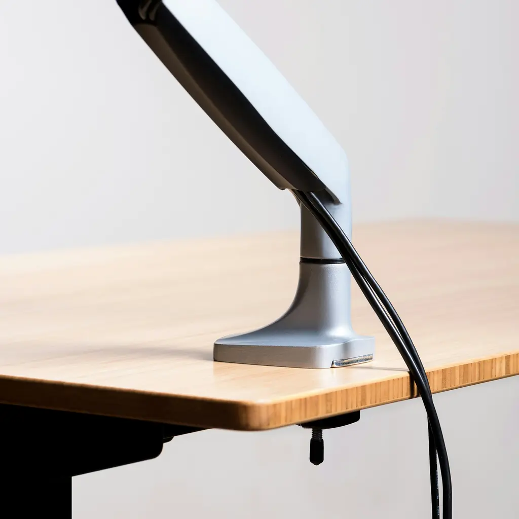 The Jarvis Monitor Arm gives you the freedom to comfortably position your screen – or laptop – to exactly where you need it. Pull the screen closer, move it up or down, or pivot it left or right. Your neck and spine will thank you and you’ll also free up valuable desk space. With the Jarvis Monitor Arm you’ll get a removable VESA mounting plate, cable management, easy tension adjustment for varying monitor weights, and the option of mounting your monitor arm in grommet holes or clamping it to the desktop. VESA 75mm or VESA 100mm compatible.