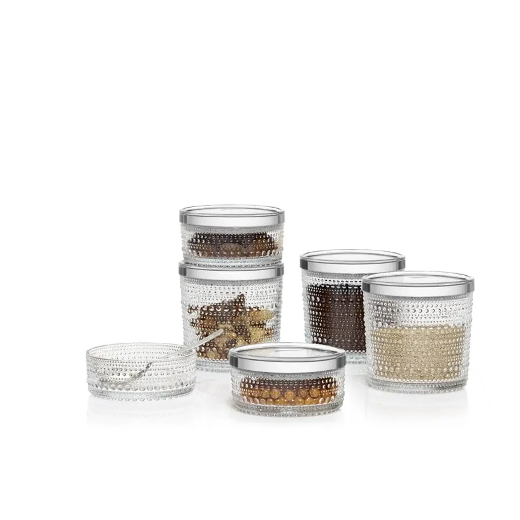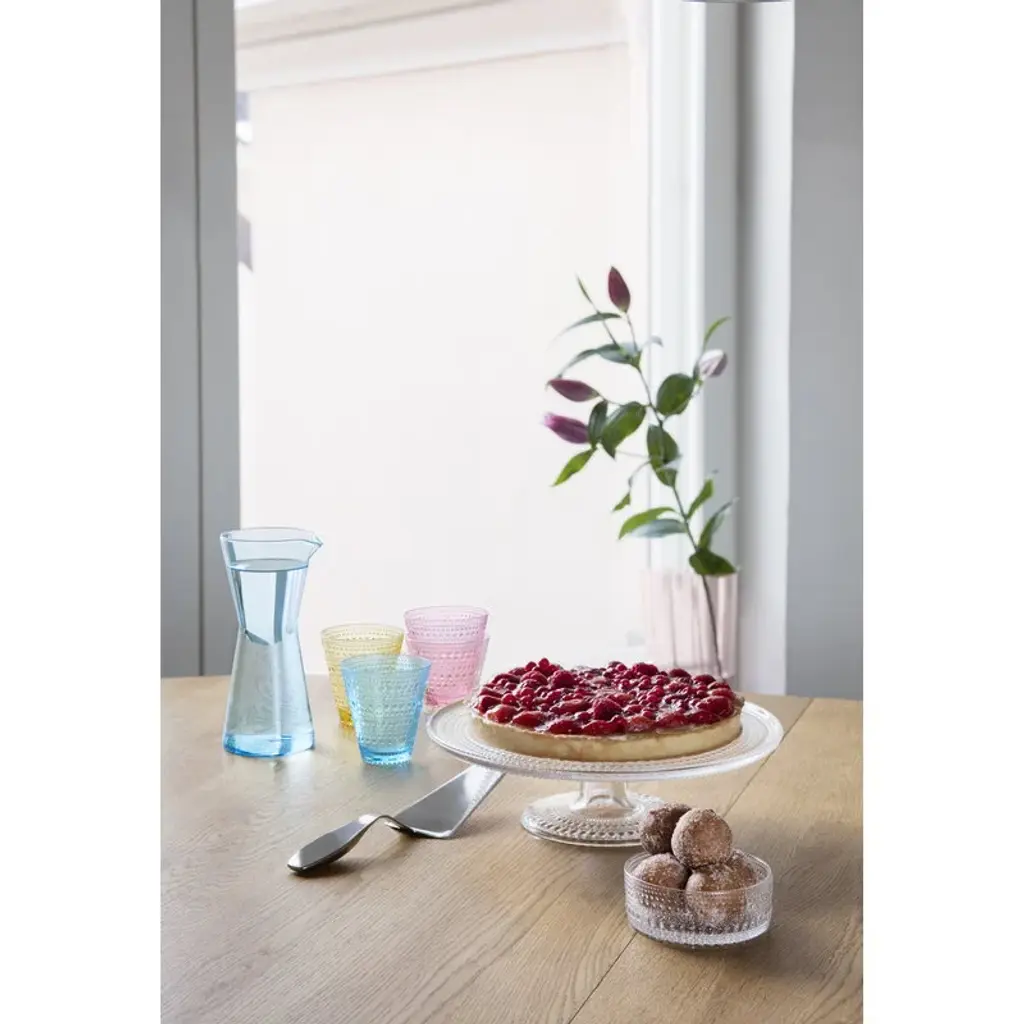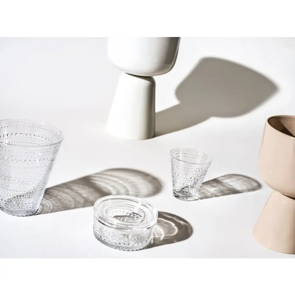 In 1964 Oiva Toikka’s aim was to design a pattern that would conceal the joint marks in pressed glass. The result was Kastehelmi, Finnish for dewdrop, that features delicate glass droplets arranged in a series of rings. Kastehelmi became one of Toikka’s most beloved series of glassware and it was manufactured until 1988. The most popular items were brought back into Iittala’s production in 2010. Kastehelmi plays with light in the most beautiful way and suits any table setting.