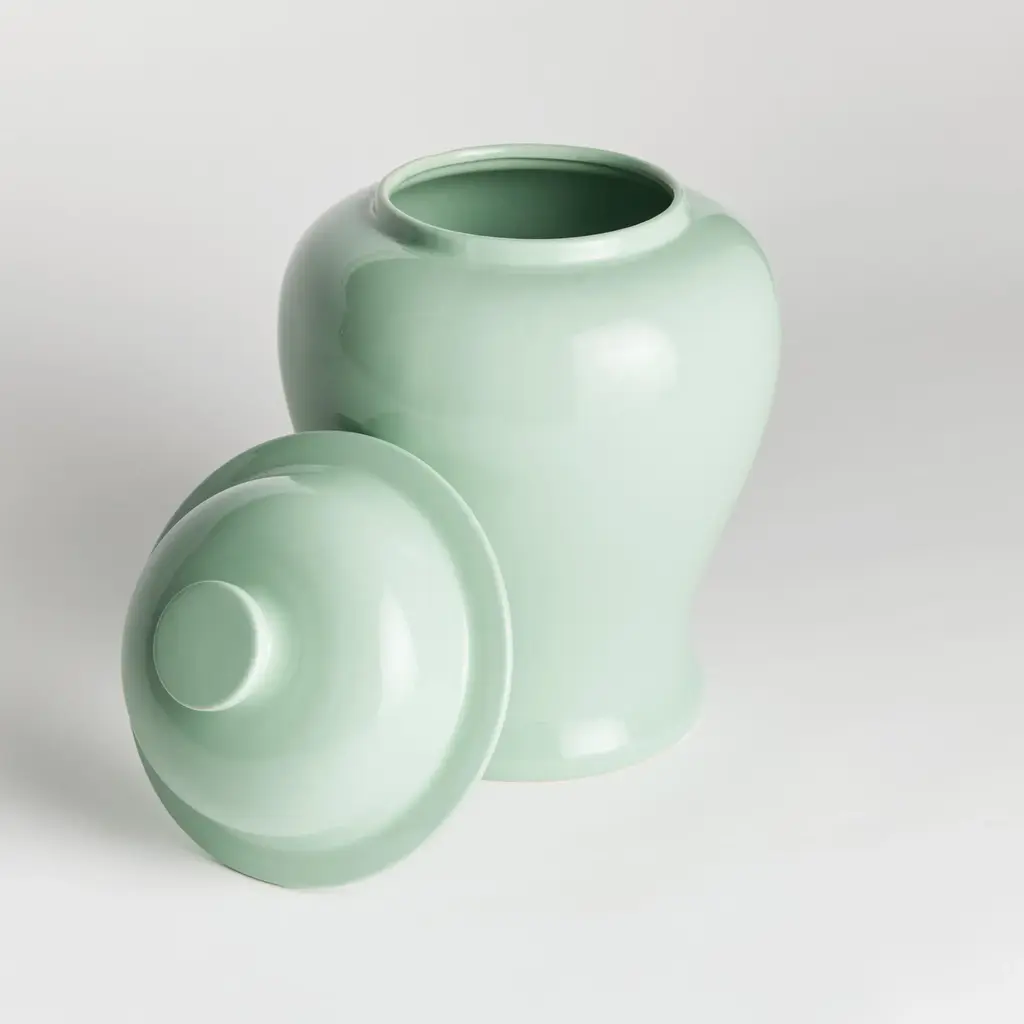 Koa Wide Lidded Ginger Jar Small, Soft Green