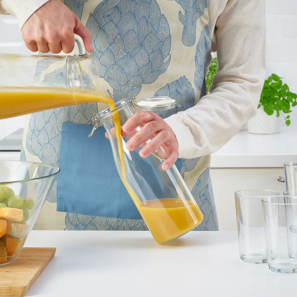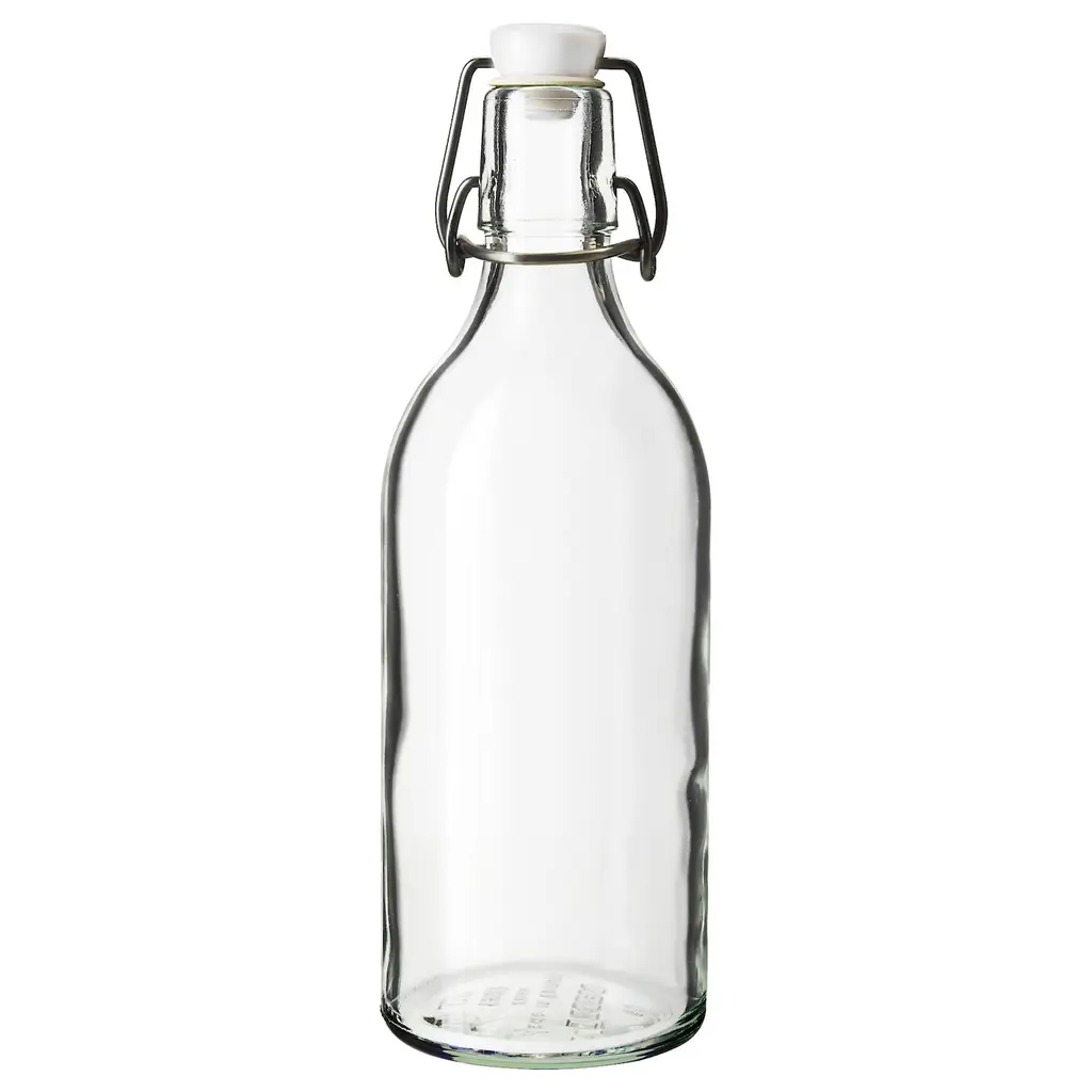 KORKEN Bottle-shaped jar with lid - clear glass 47 oz. Perfect for storing pickled vegetables, preserved berries or other tasty things from nature's pantry, as well as dry goods like pasta, granola, tea or yummy biscuits. The airtight seal helps food retain its flavor and aroma longer.