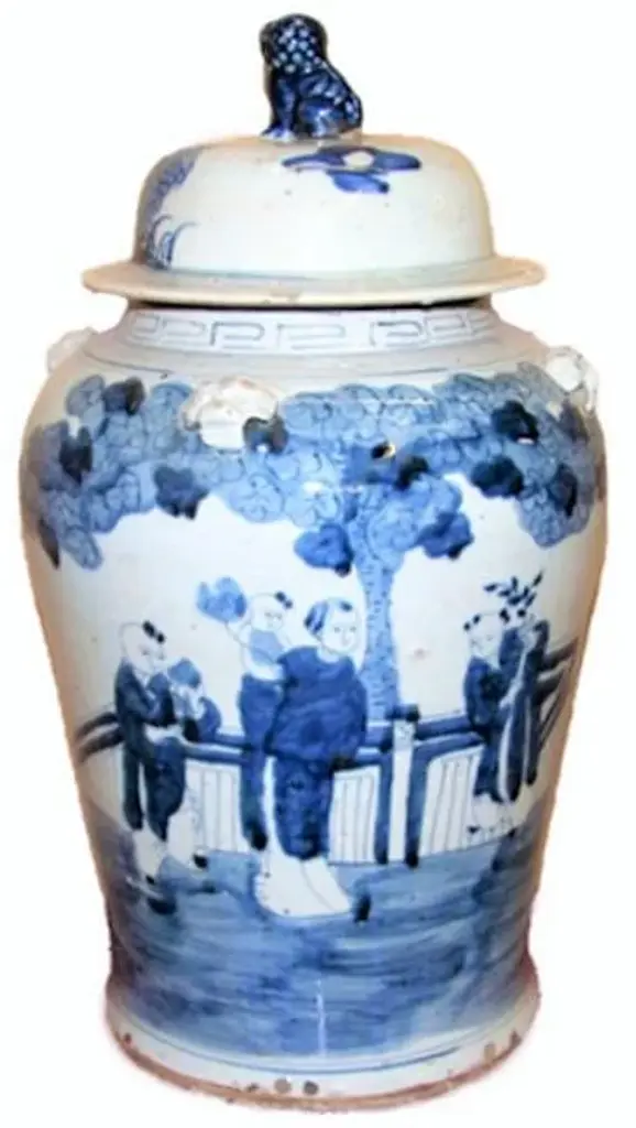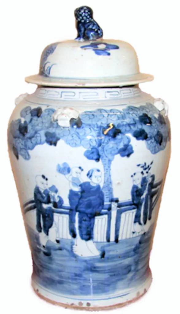 Large Blue & White Chinoiserie Ginger Jar With Children