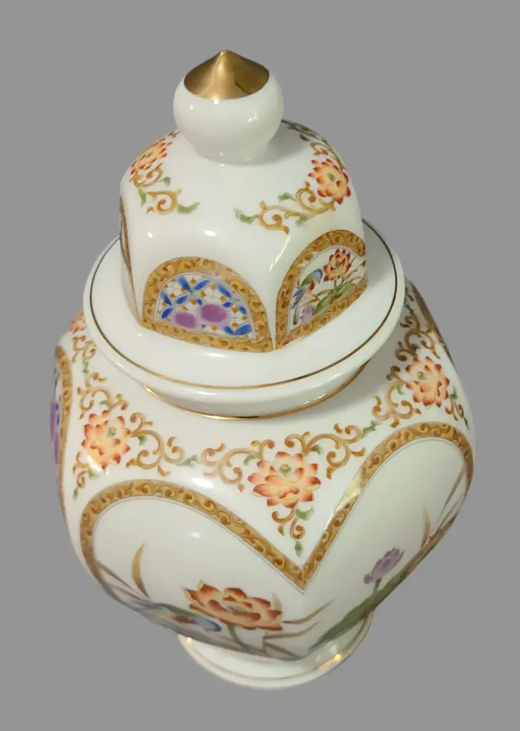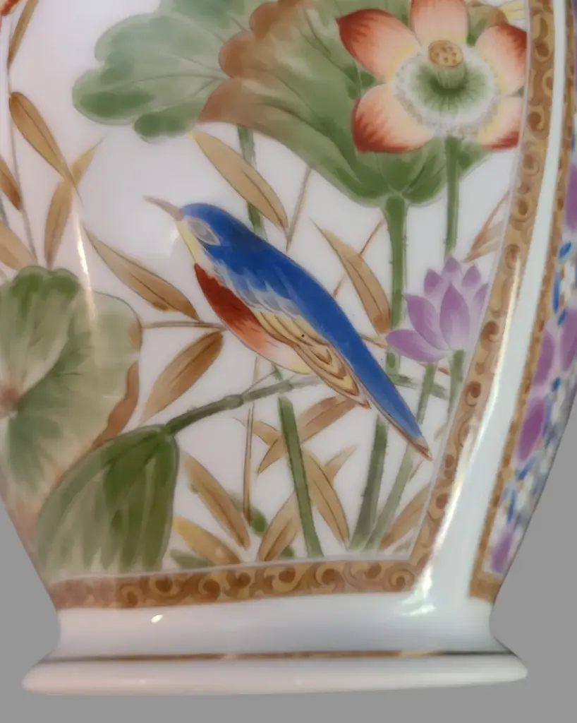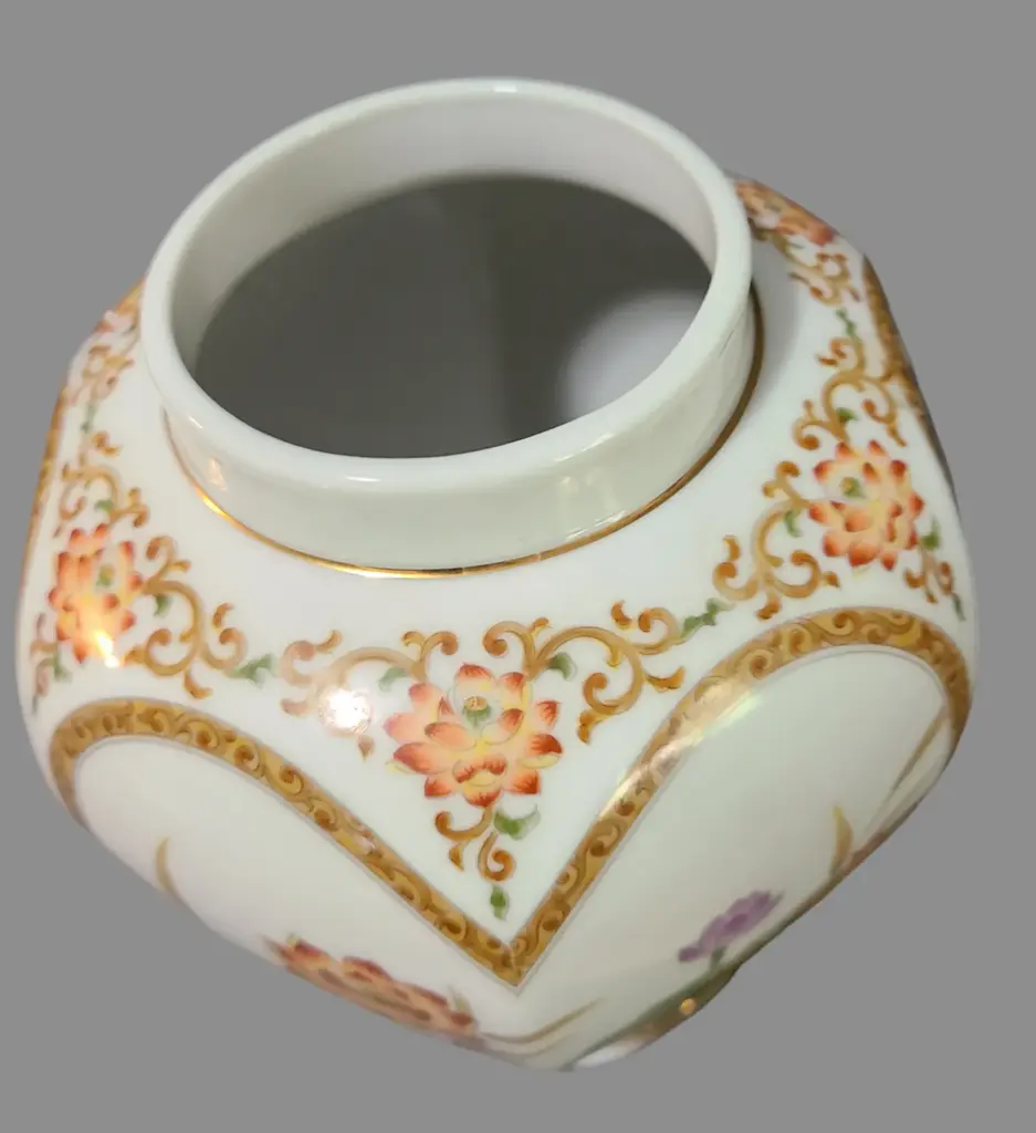 Late 20th Century Vintage Japanese Ginger Jar Bird Lotus Floral Design
