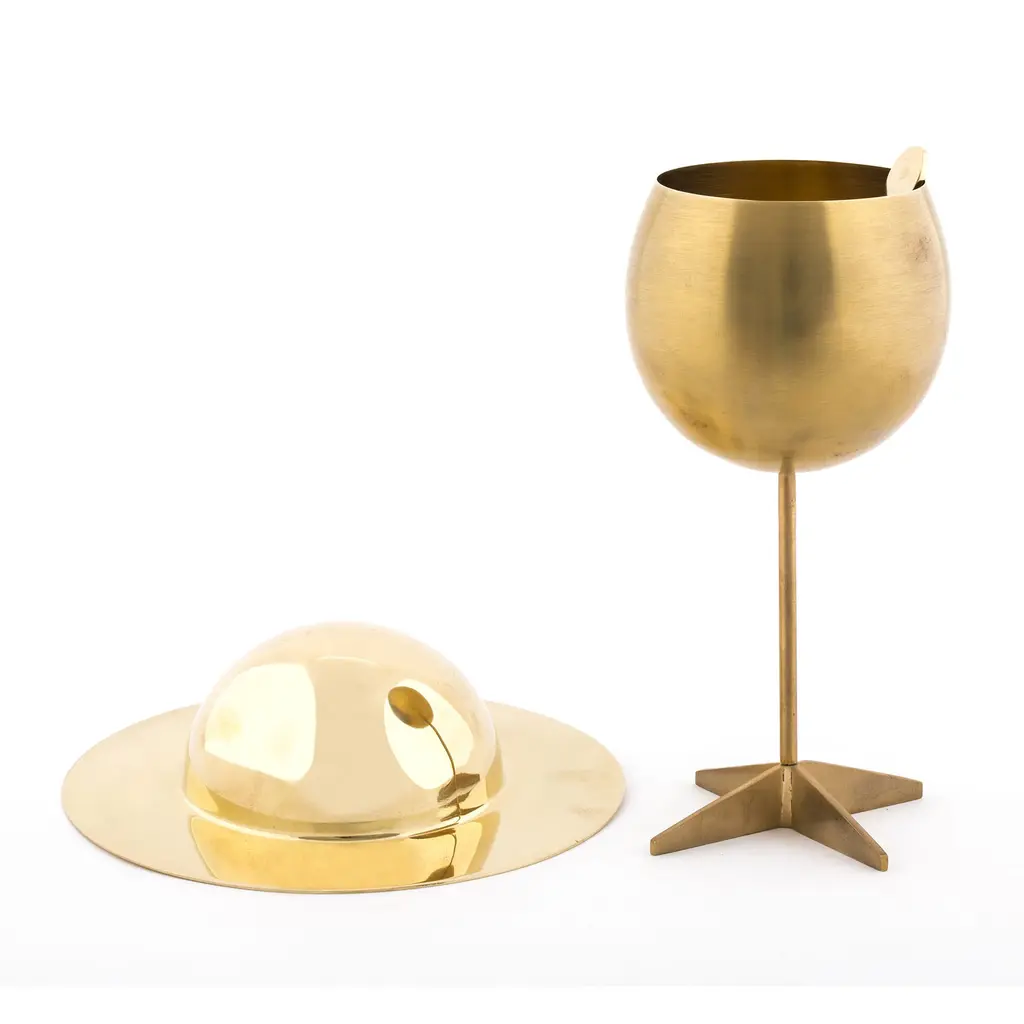 Featuring a blend of creativity and elegance, this Lunar Sugar Jar also brings playfulness to the dining table. Designed by Diesel Living and Seletti, this jar is part of the Cosmic Diner collection that references the solar system. The sculptural design will add a distinctive appearance to any tableware setting. The lid fits the bowl perfectly to create the celestial object design. This brass sugar jar comes with a large spoon, for more convenience. Measuring 26 cm in height and 20.3 cm in diameter, this is one tableware accessory that will never be overlooked. A salad bowl with a similar design is also available in our shop, along with other dinnerware from the Cosmic Diner collection.