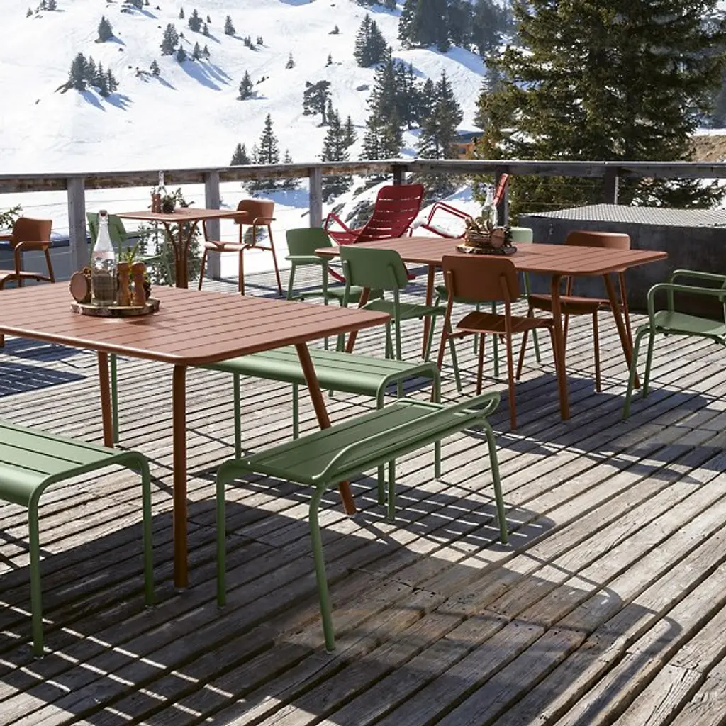 The Fermob Luxembourg Bench is smooth, stackable and stylish. Inspired by the seating throughout the Jardin du Luxembourg in Paris, this bench is nearly five feet long, able to comfortably seat three to four people. It features a tubular aluminum frame and extruded aluminum slats in a durable polyester powder coat. Available in Fermob's full array of colors.