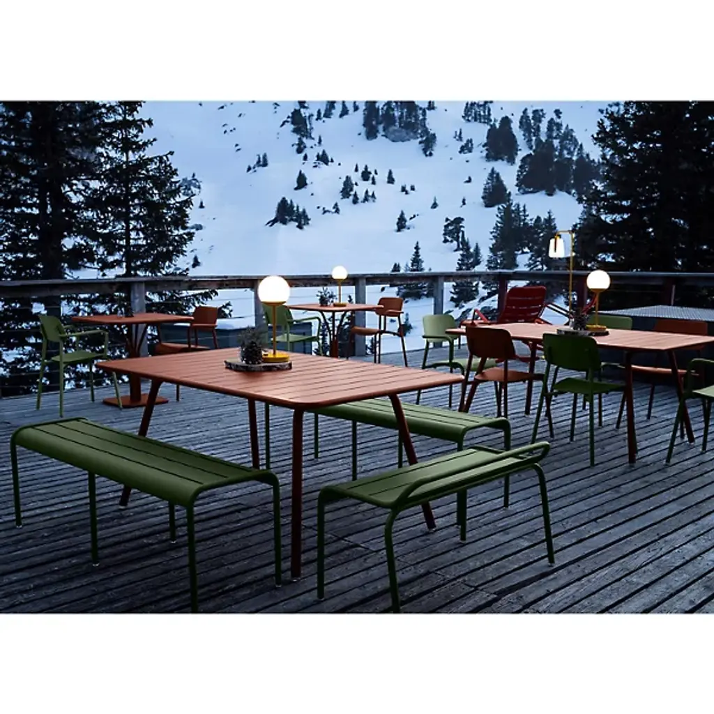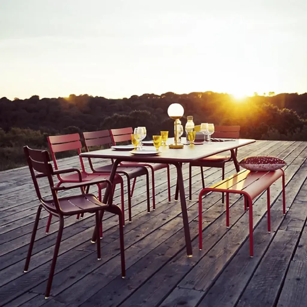 The Fermob Luxembourg Bench is smooth, stackable and stylish. Inspired by the seating throughout the Jardin du Luxembourg in Paris, this bench is nearly five feet long, able to comfortably seat three to four people. It features a tubular aluminum frame and extruded aluminum slats in a durable polyester powder coat. Available in Fermob's full array of colors.